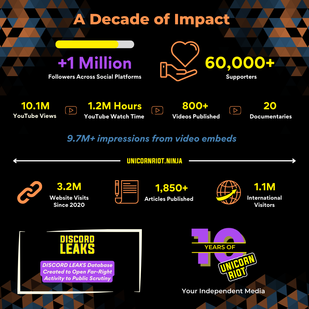 For 10-plus years Unicorn Riot has brought you community-centered stories: 800+ videos, 20 documentaries, and 1,850+ articles - all without paywalls or ads.