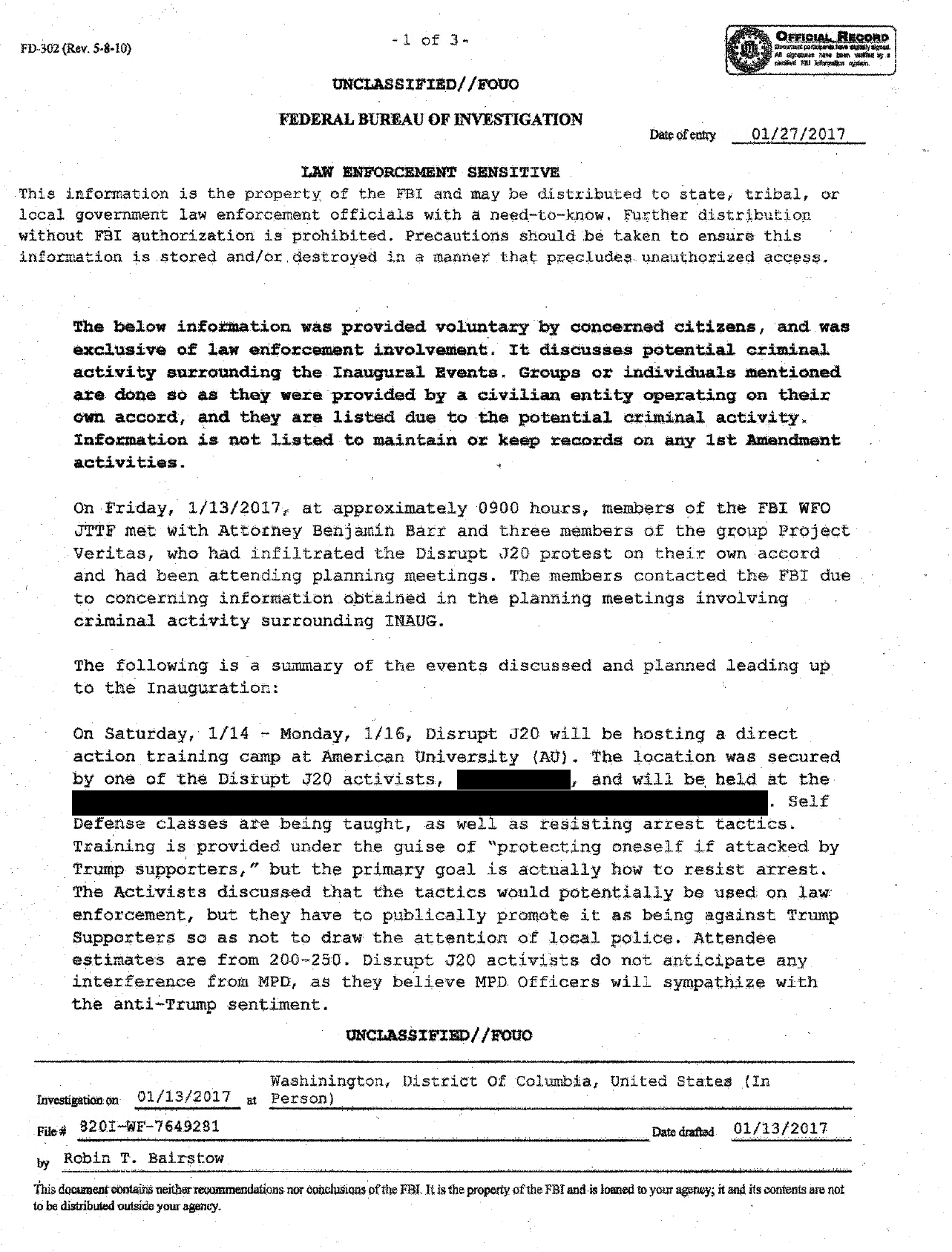 Many of the #J20 court proceedings revolved around a secret FBI '302' doc recording the collaboration between Project Veritas disinformation agents and the federal government and DC Police to go after anti-Trump protest organizers.