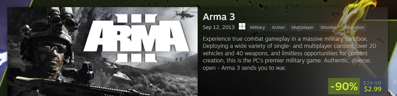 Oh yeah, Arma. The milwank simulator. "I'm too realistic for CoD, too high strung for battlefield, and I don't have the patience to play sniper elite."