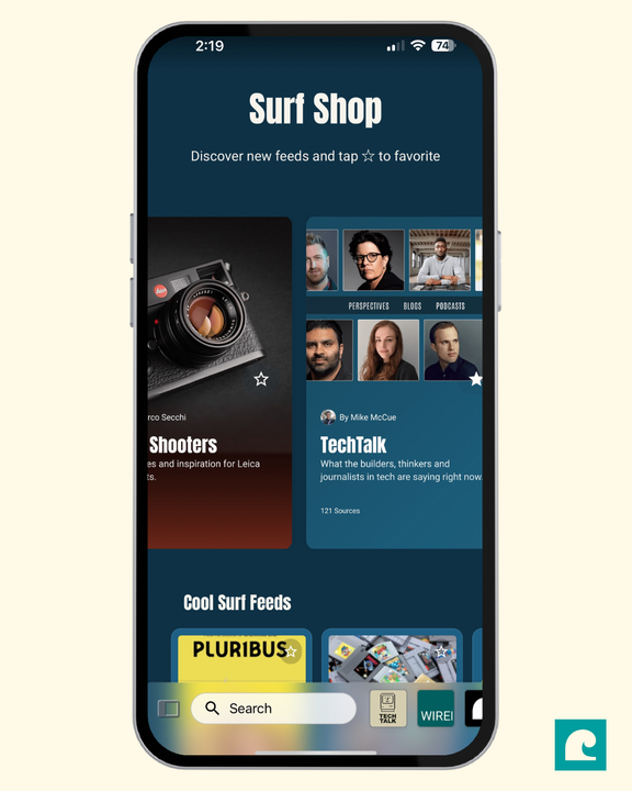 🏄🏻🎉 There's a new beta for Surf available on TestFlight and Google Play. As well as the usual performance improvements and bug fixes, we've made some updates to the Surf Shop. Tap Discover Feeds in your sidebar to check out what's new and find inspiration for when you create your own feeds.