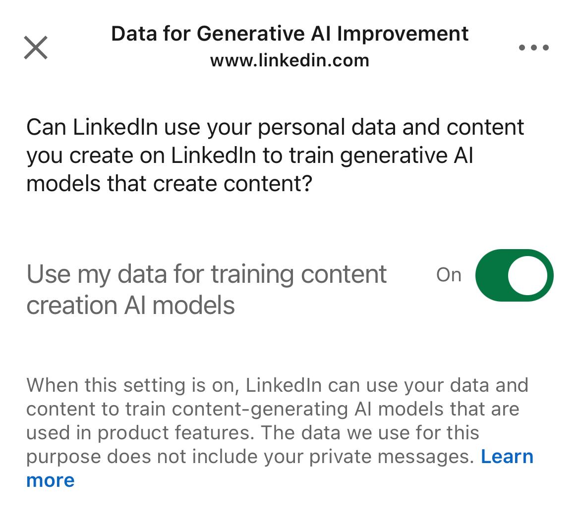 🛑 #LinkedIn (#Microsoft and their “affiliates”) will use your data for #AI without you necessarily fully understanding what they will, can, and may do with it‼️