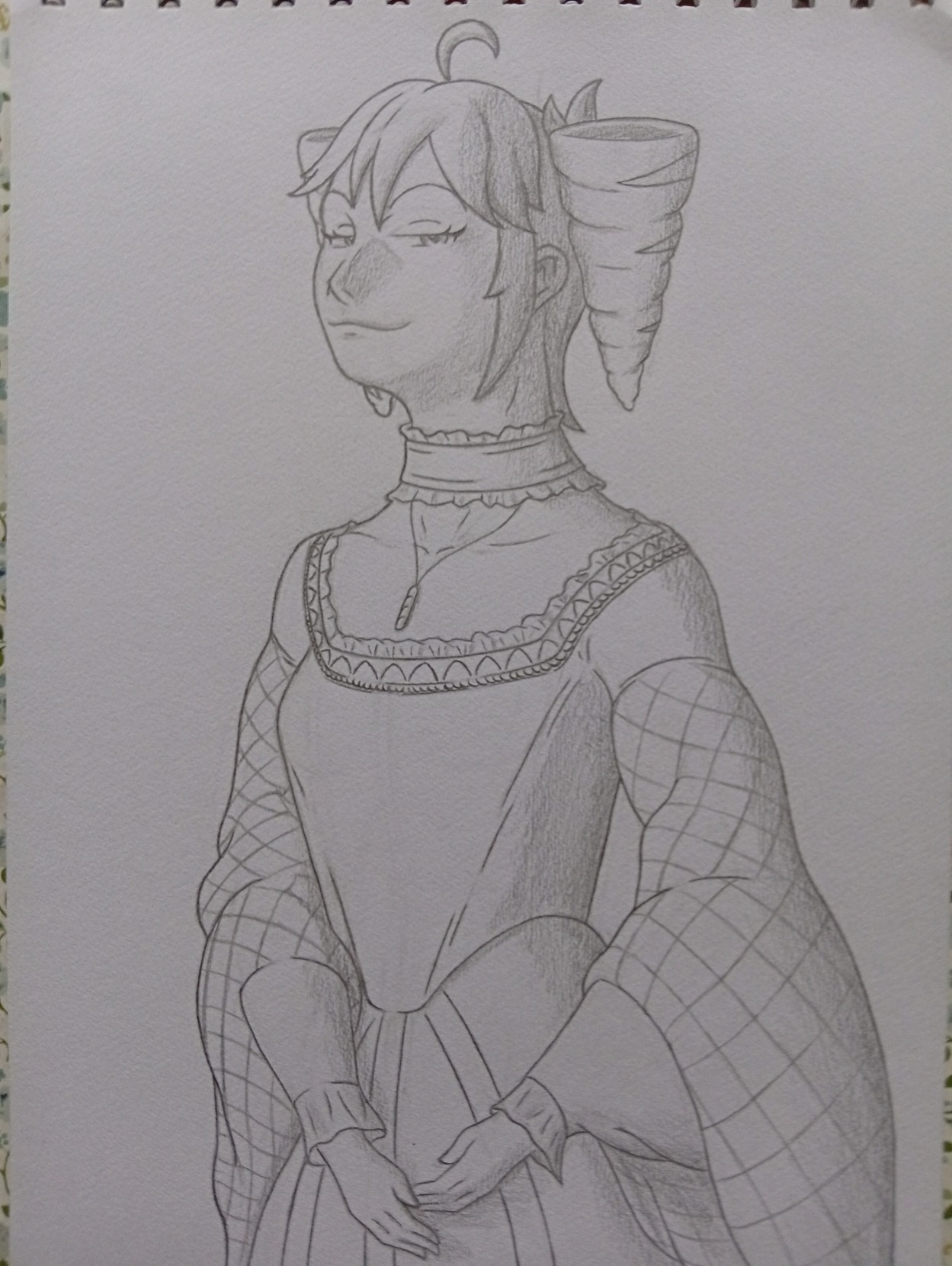 I wanted to keep doing studies on clothing and so i decided to draw a smug Teto in a tudor style dress.