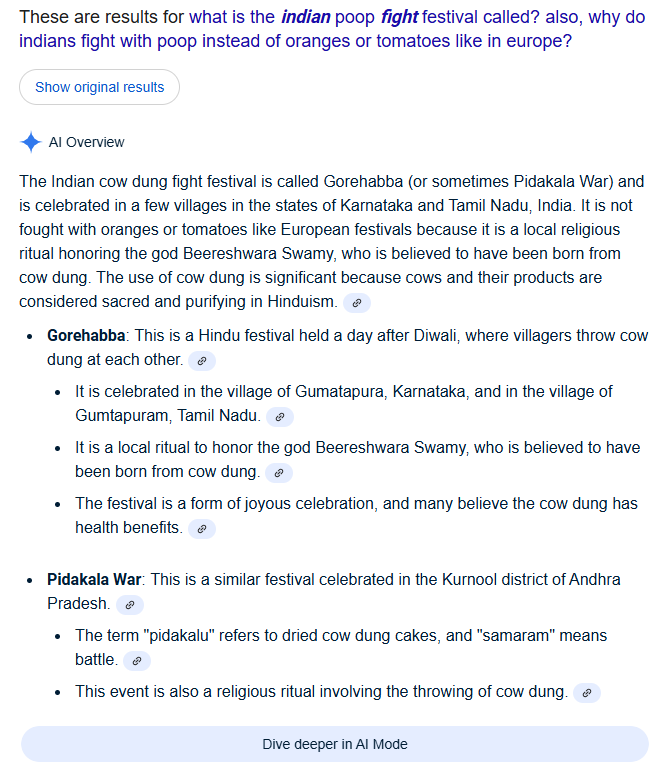 @Humpleupagus @HEREWARD_SILVATICI @Aether ok, so there's two poop throwing festivals in india, the one called gorehabba which is one day after diwali which just recently happened and there's another one called pidakala which takes place in the spring during some new year festival - not ONE, but TWO!!!!!! 😱 -