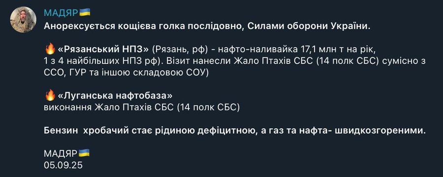 #Ukraine's Magyar drone crew takes credit for last night's two Russian oil infrastructure hits.