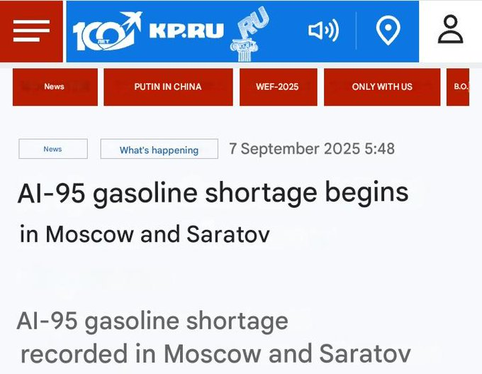 #Russia continues to spiral into fuel chaos as entire cities are now literally running on fumes.
