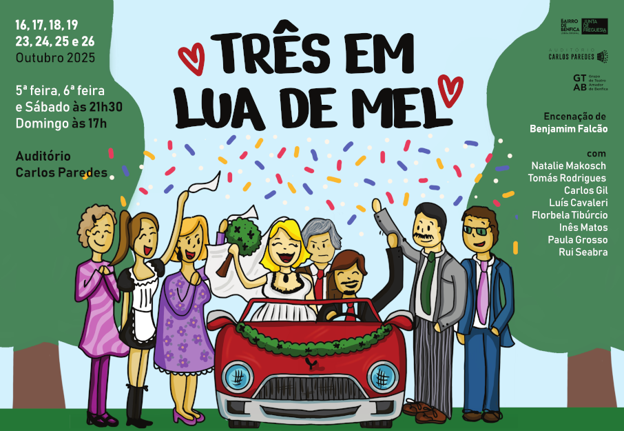 »Honeymoon for three», the most recent play from Benfica's Amatheur Teater Group opens on October 16th. It's hilarious, I hope you enjoy it. -> in Portuguese.