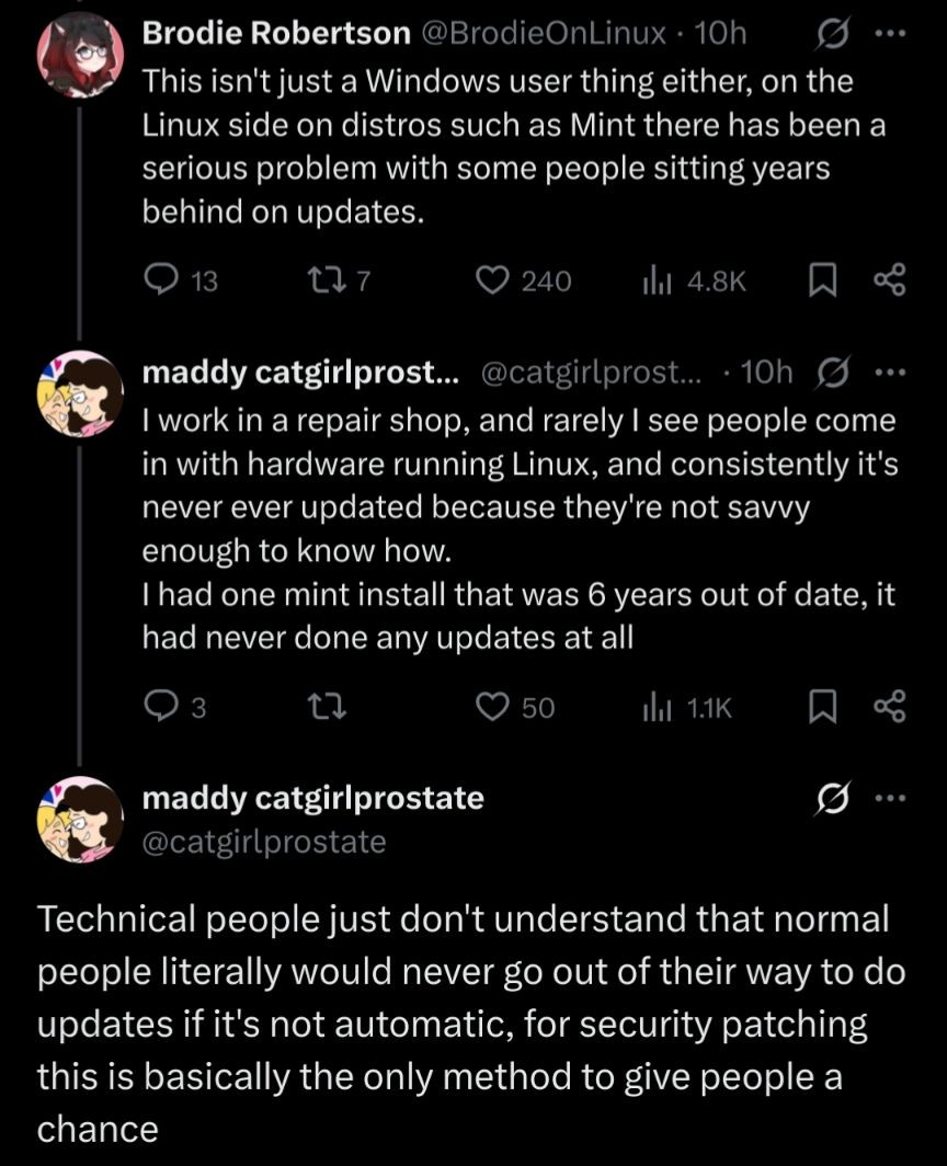 What's going to happen to all your friends you let stay on 10 until the day it went eol, is they will be woefully unprepared to switch to Linux as their daily driver