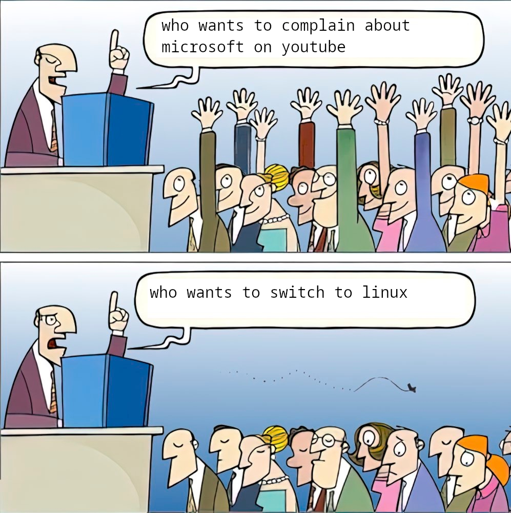 I want to remind all of you that you're going to meet people who say they'll switch to Linux once 10 goes eol