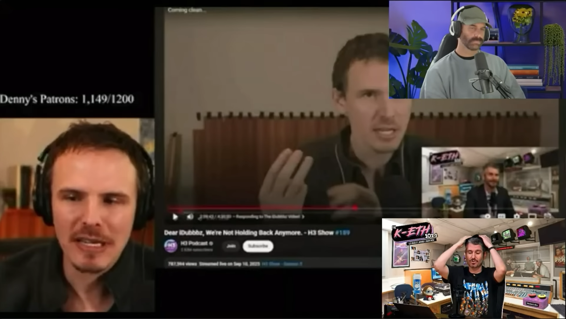 Keeping up with the idubbbz downfall is crazy, because everyone involved is too petty to respond to each other directly but also too terminally online to let anything slip. So you'll get frames like this where they're like seven reaction videos deep and the original subject matter from weeks ago at this point is just completely lost.
