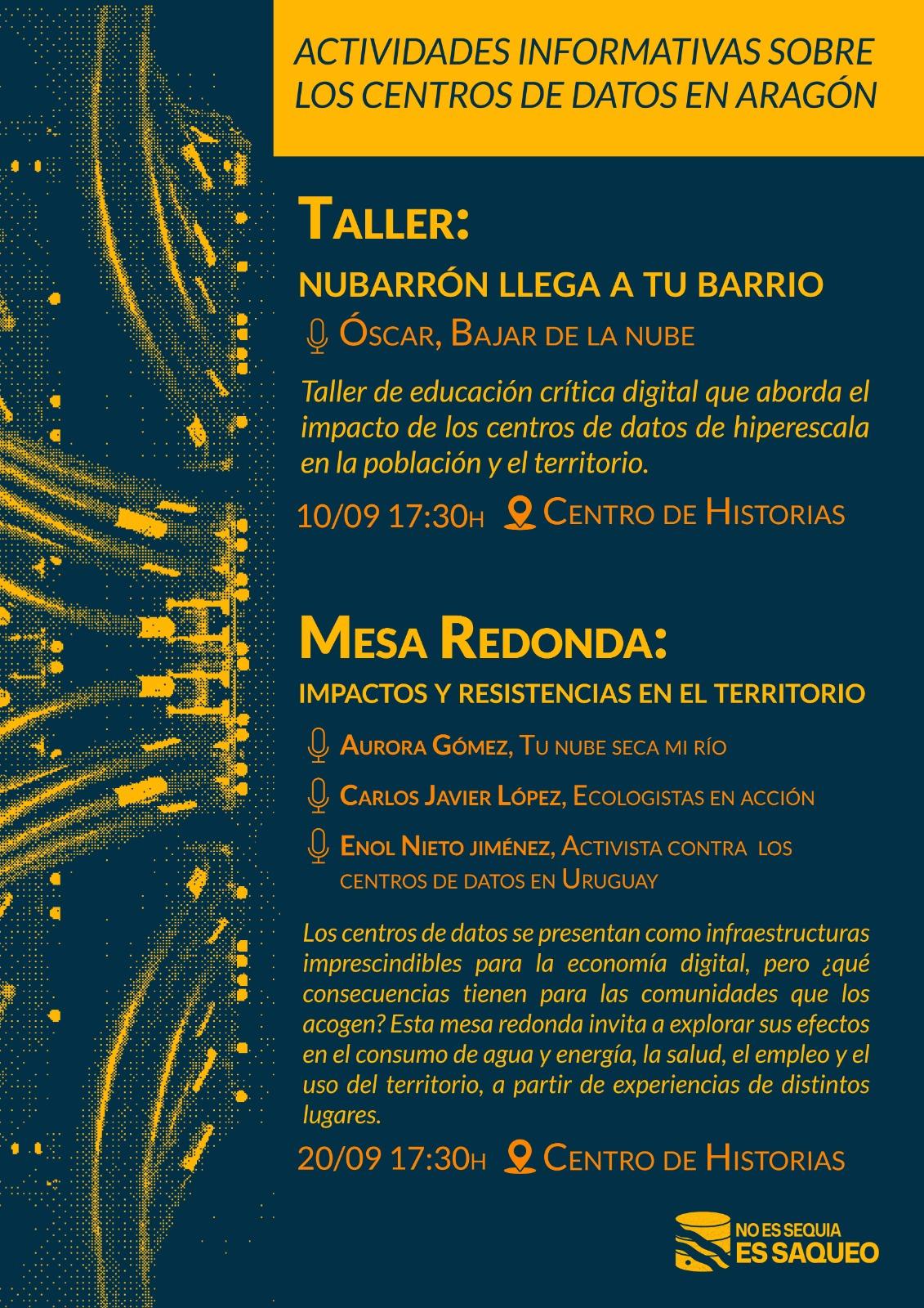 ⚡ Mañana sábado 20 de septiembre a las 17:30h en el Salón de Actos del Centro de Historias, haremos una mesa redonda con Aurora de "tú nube seca mi río", Carlos de Ecologistas en Acción Zaragoza y Enol, activista contra los centros de datos en Uruguay.