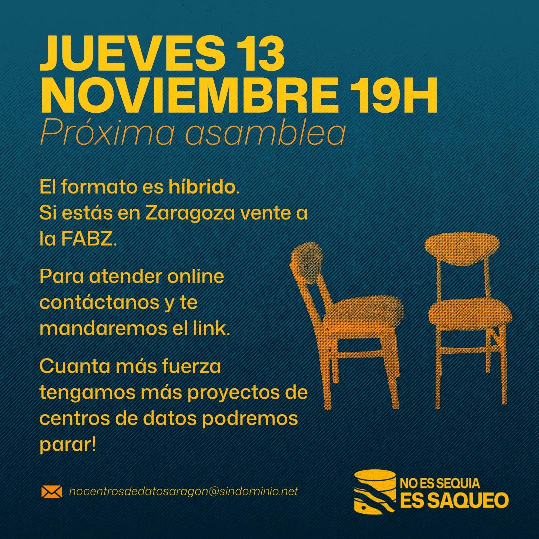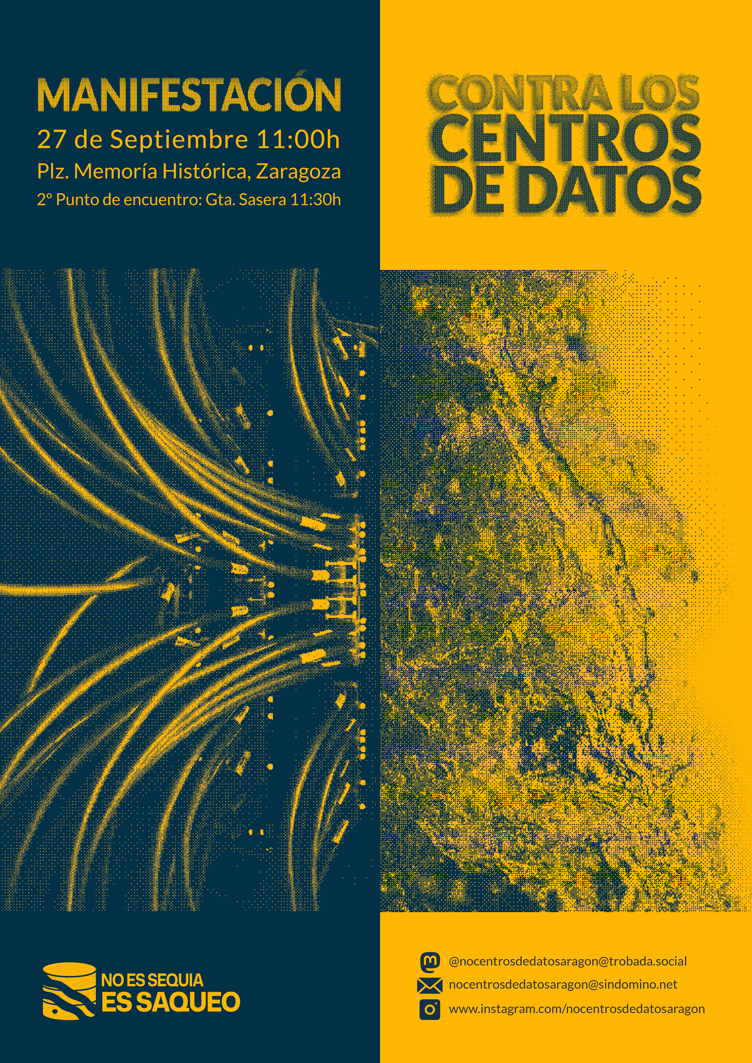 :ablobcatbongokeyboard: ¿Has oído sobre la muchedumbre de centros de datos que el oligopolio tecnológico nos quiere montar en Aragón? ¿Quieres saber qué conlleva y cómo pararlo? :blobcatheart: Vente a la próxima asamblea de No es sequía, es saqueo . También nos puedes escribir a nocentrosdedatosaragon@sindominio.net