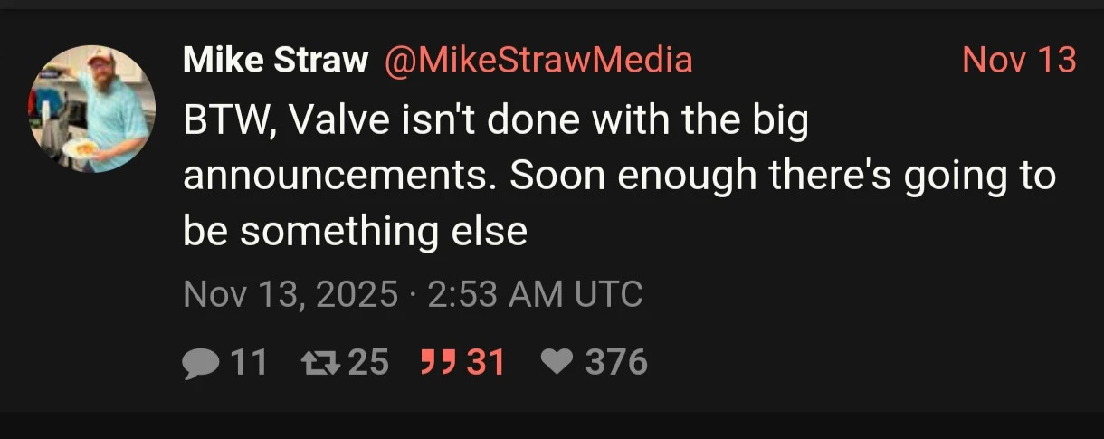 So if it is not obvious I am extremely excited for all 3 of :steam: Valve's new hardware releases. I have not been this pumped for new gaming hardware I think since the.... #Steam Deck. Each of the releases has me jazzed for different reasons. I think the Frame will surprise quite a lot of people once they release how low powered it is. The wireless streaming dongle that comes in the box with it I think was such a smart experience to ensure anyone who has a decent rig can get a solid connect.