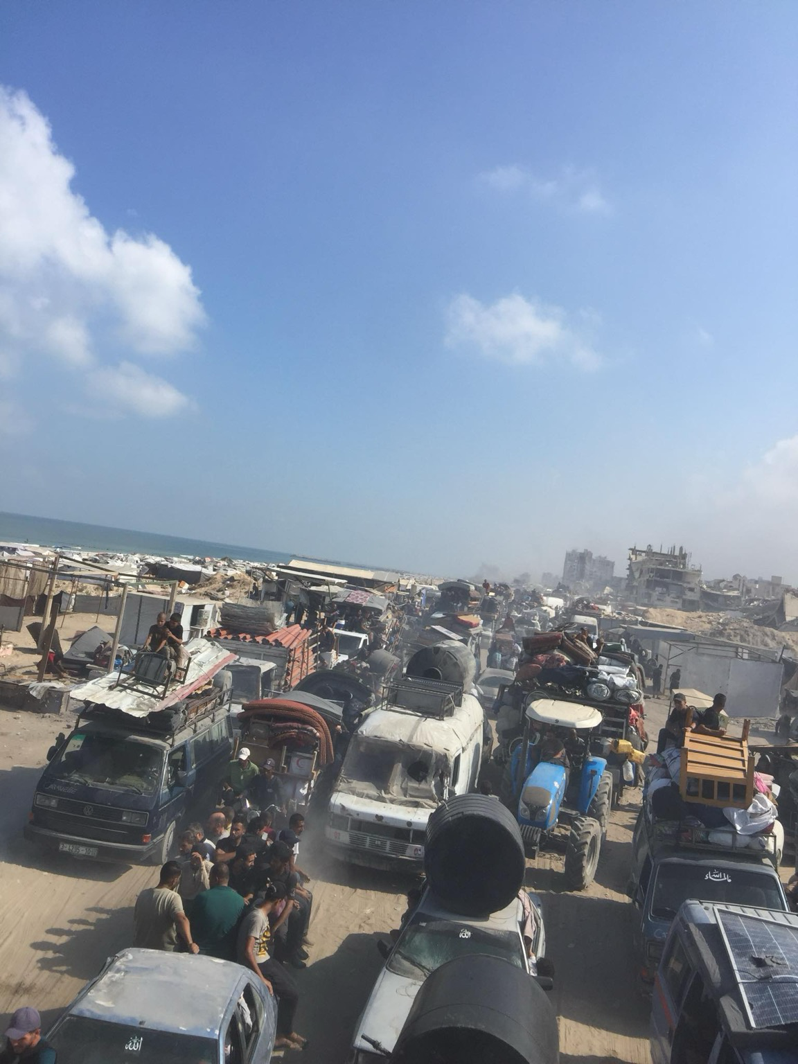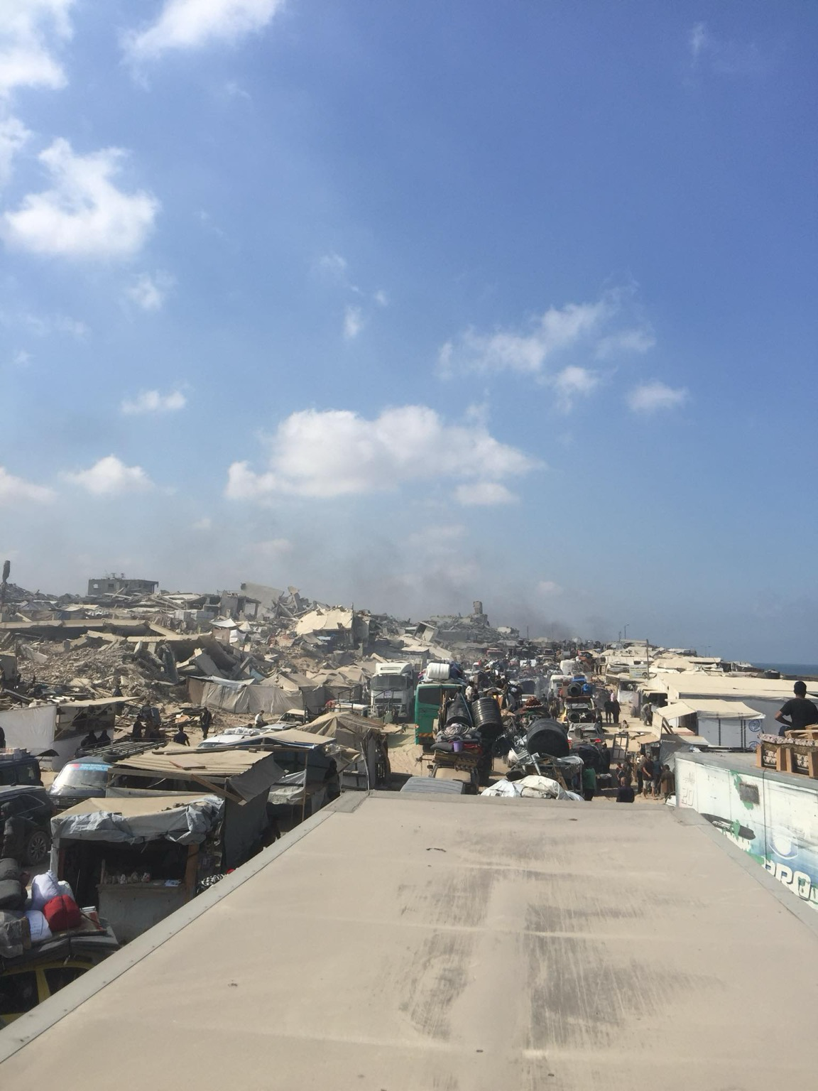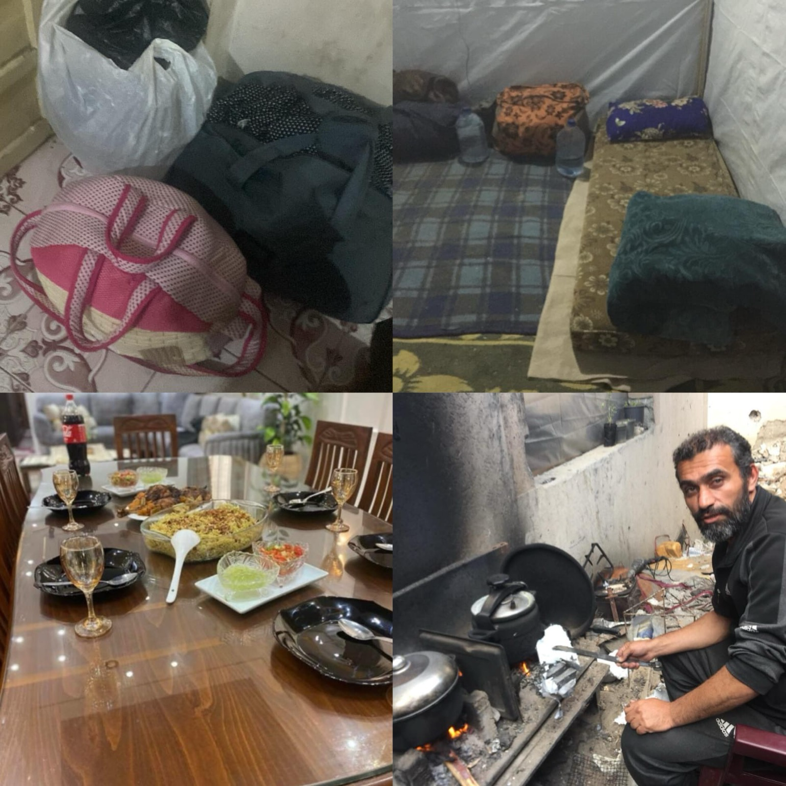Seven families share just one tent. Women and children stay inside, while men sleep outside under the sound of rockets.