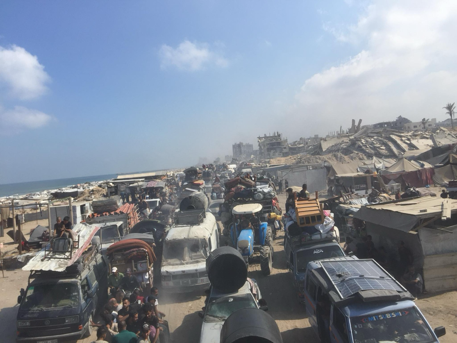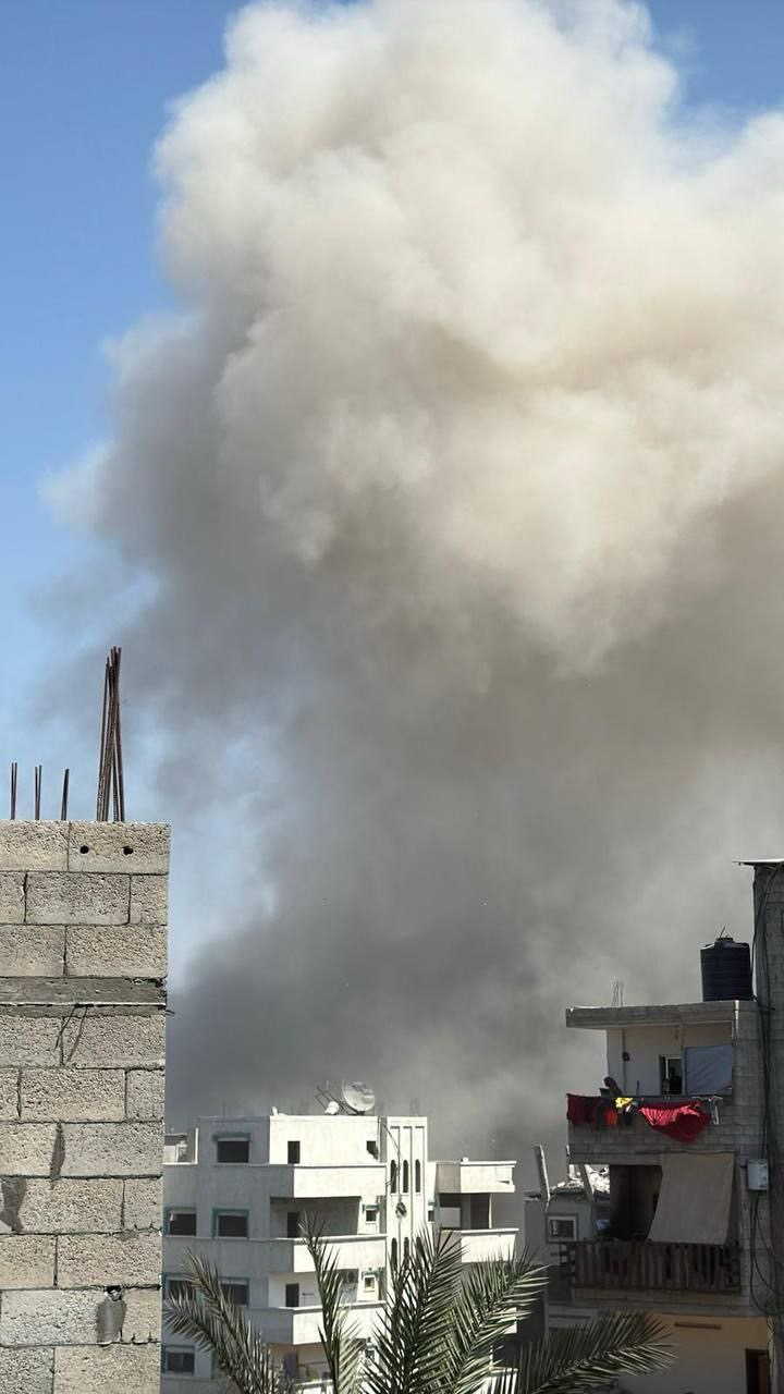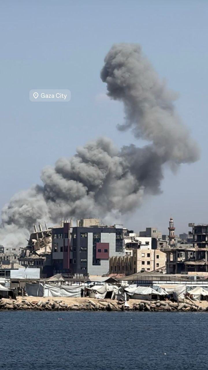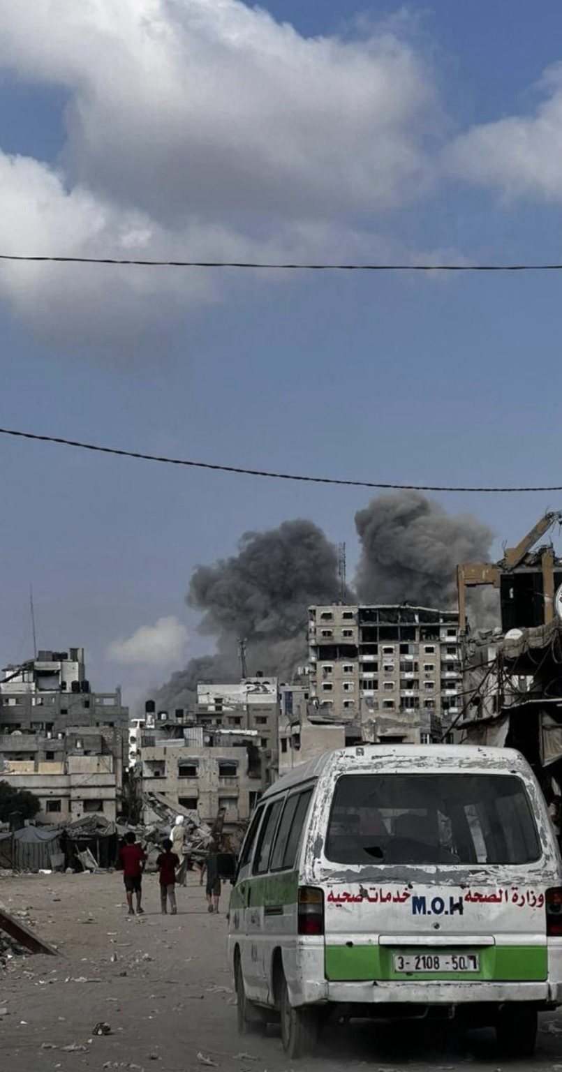 Seven families share just one tent. Women and children stay inside, while men sleep outside under the sound of rockets.