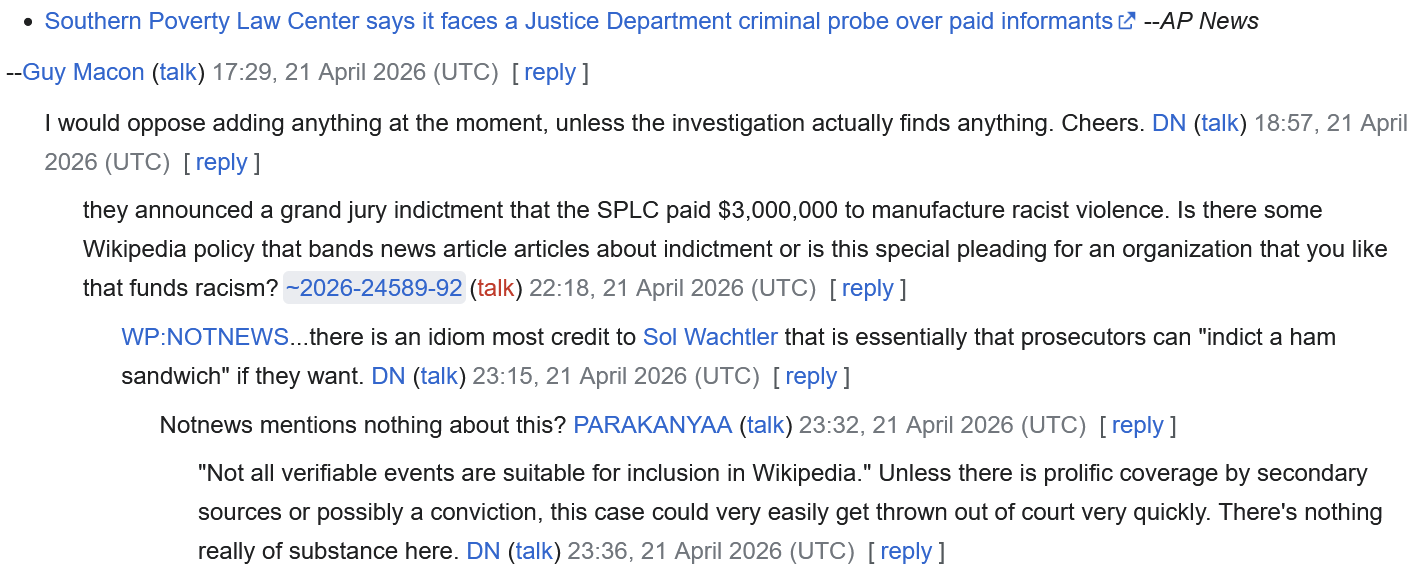 @vii I think the point is to fund the bogeymen, the KKK, American Front, etc., in order to discredit the more reasonable groups by proxy. SPLC funds the Unite the Right rally, everyone gets worked up over it, they get more donations, then the SPLC goes after Turning Point, putting it in the same category as everything else.