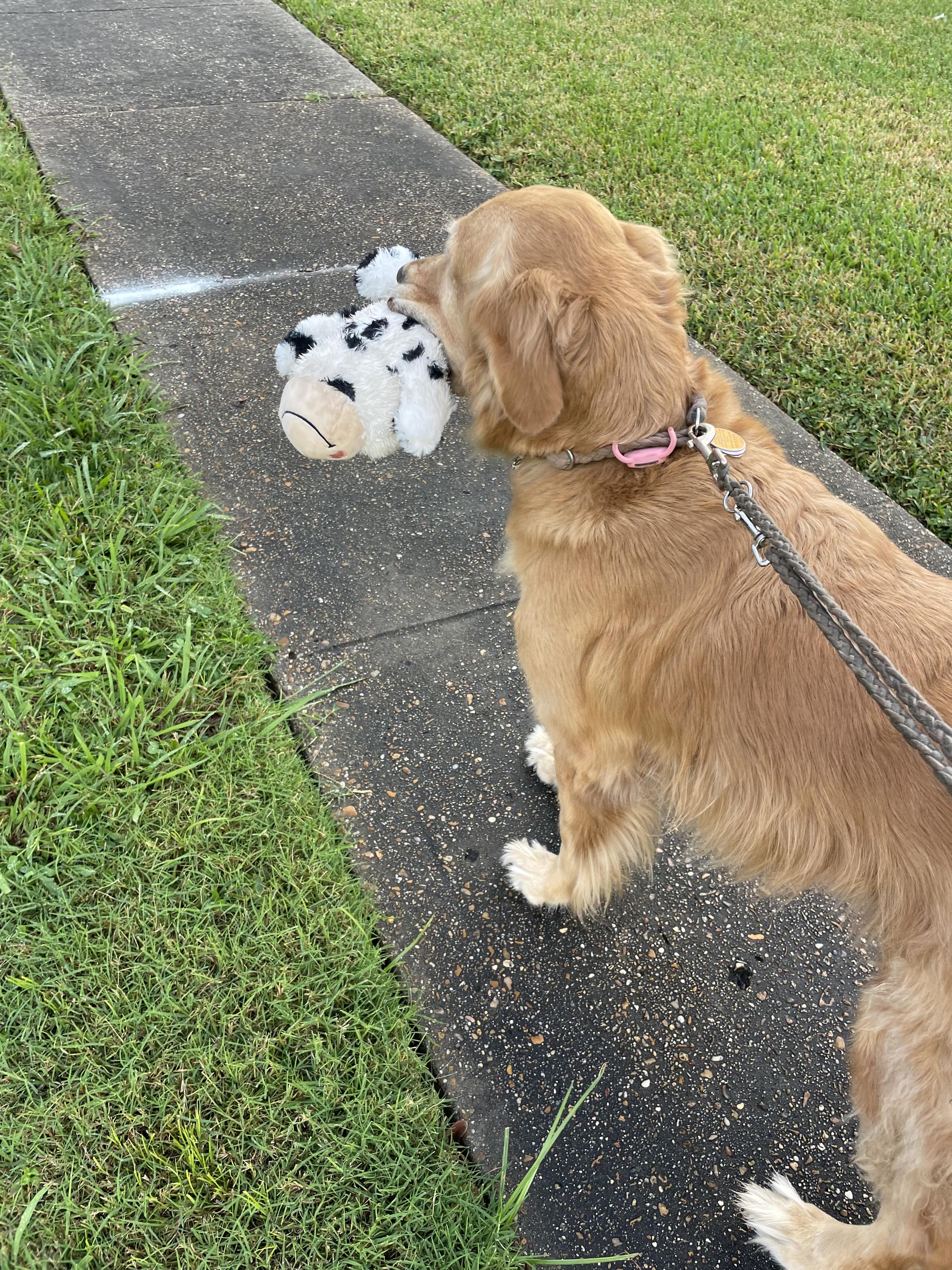 It's fun walks time! And Phoenix declared that nothing would do, but she take her new stuffed cow friend on a tour of the neighborhood. I tried to convince her otherwise and she just yelled at the top of her voice so… Rather than risk her waking up the whole neighborhood with her protestations I'm letting her take this cow on her morning stroll. I hope she enjoys herself.