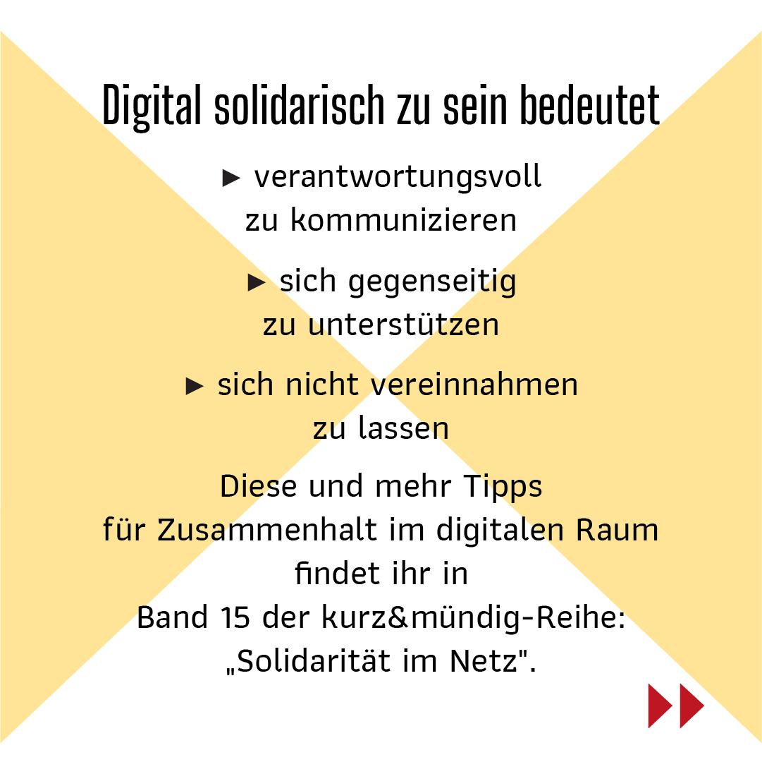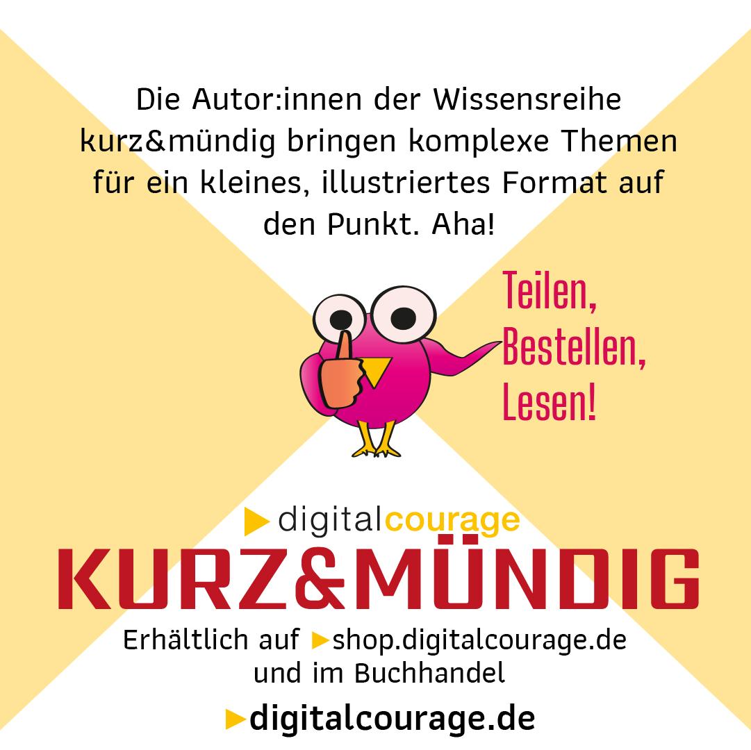 Müde von Feeds, wo Hass viral geht, Daten ausgesaugt werden und Barrierefreiheit nur ein Witz ist? Band 15 der Reihe #kurz&mündig zeigt, wie du auf Hass reagieren kannst, Daten umsichtig teilst, offene Formate nutzt und Quellen reflektierst – ohne Vereinnahmung oder Drama. Von überlegter Foto-Veröffentlichung, über den Ausbau von Barrierefreiheit bis hin zu bewusster Medienwahl: Solidarität im Netz wird immer wichtiger.