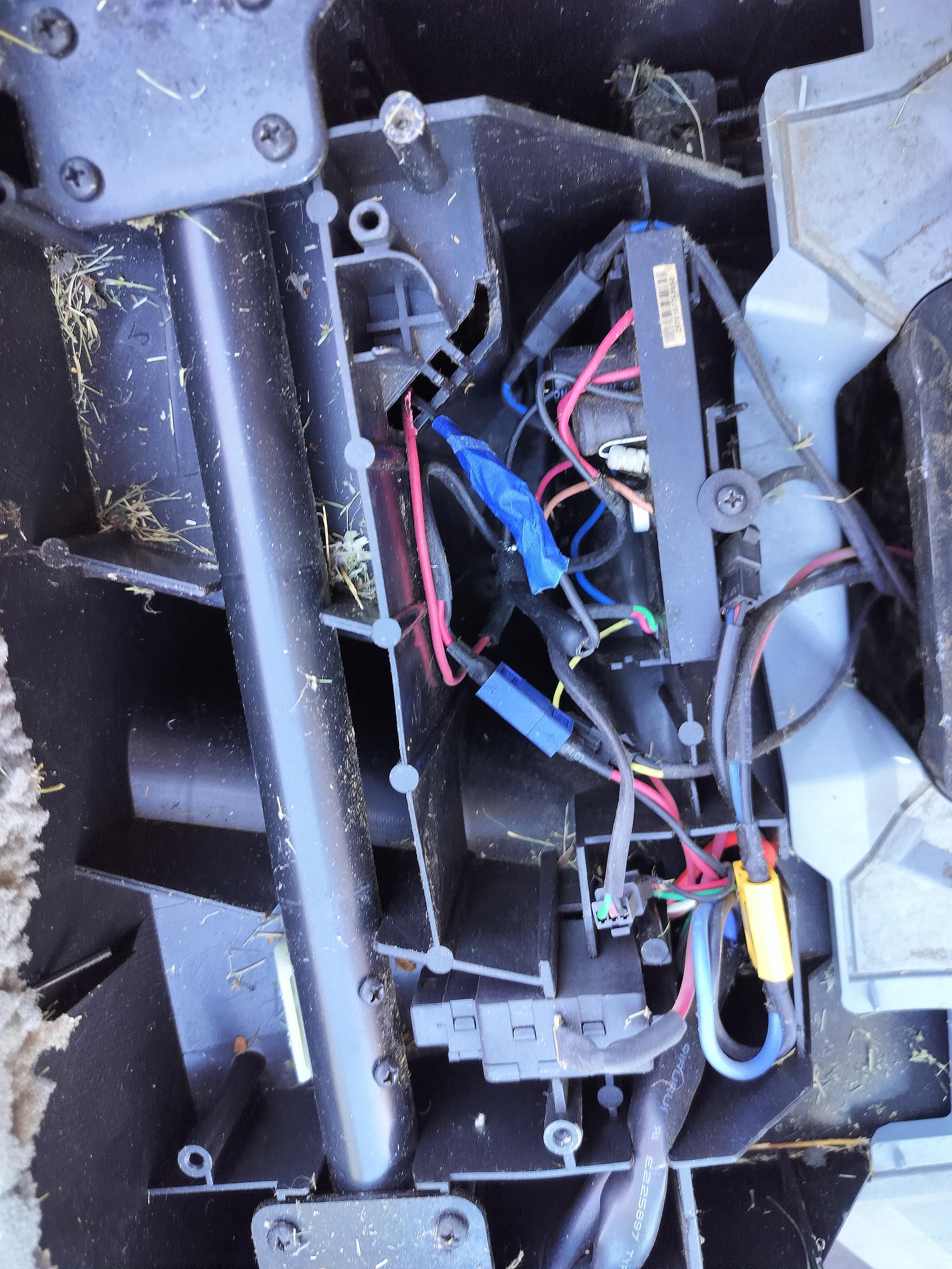 #Repair win! Our EGO electric mower started up but didn't have self propel this week. After following a few guides on YouTube I ultimately ended up taking it apart and finding a broken wire. An ugly #solder job later it's back in action.
