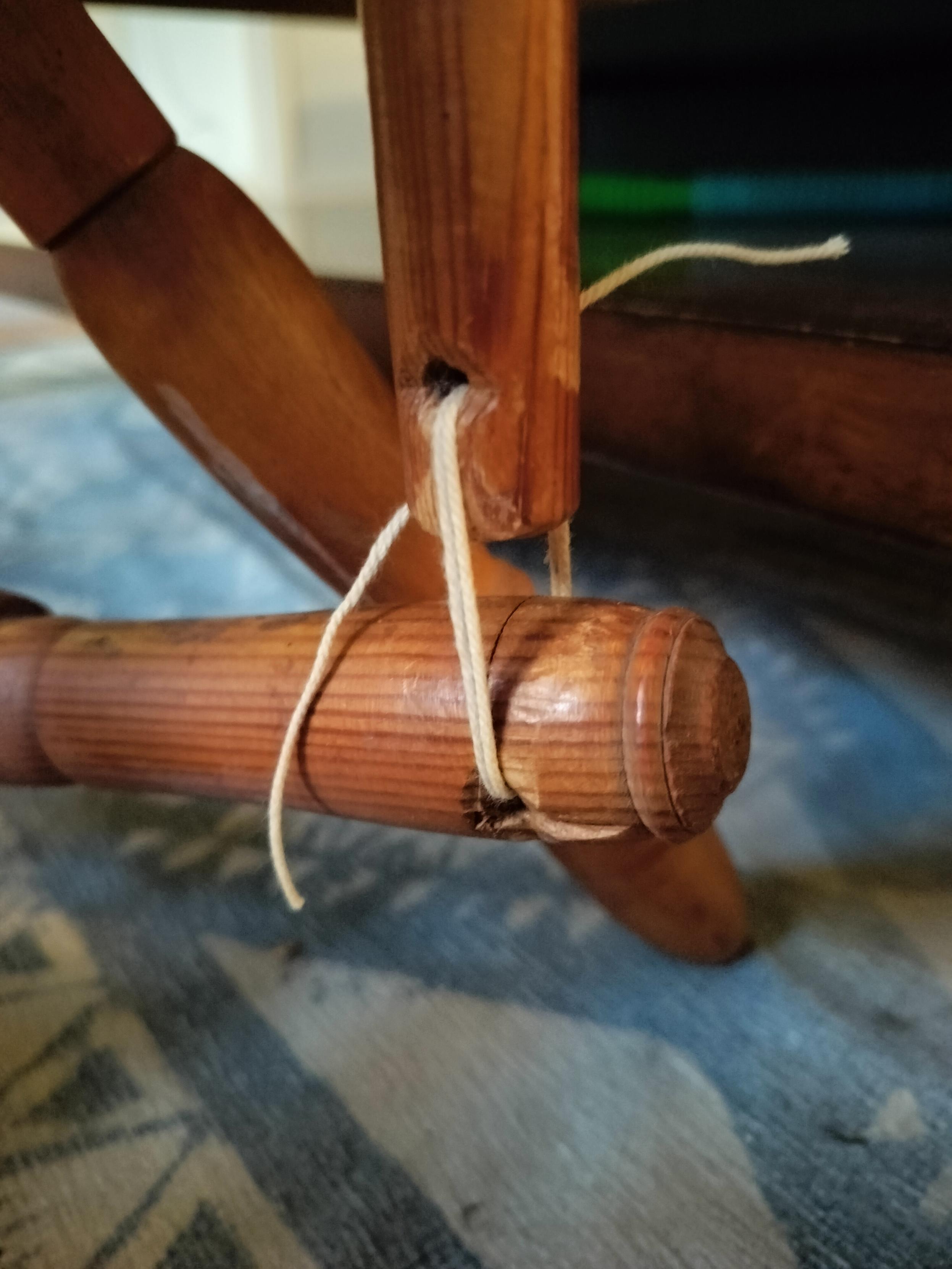 My spinning wheel hasn't been turning well. After a few YouTube videos, I realized my treadle was tied way too tightly to the postman. I left an inch gap and now it *absolutely flies.*