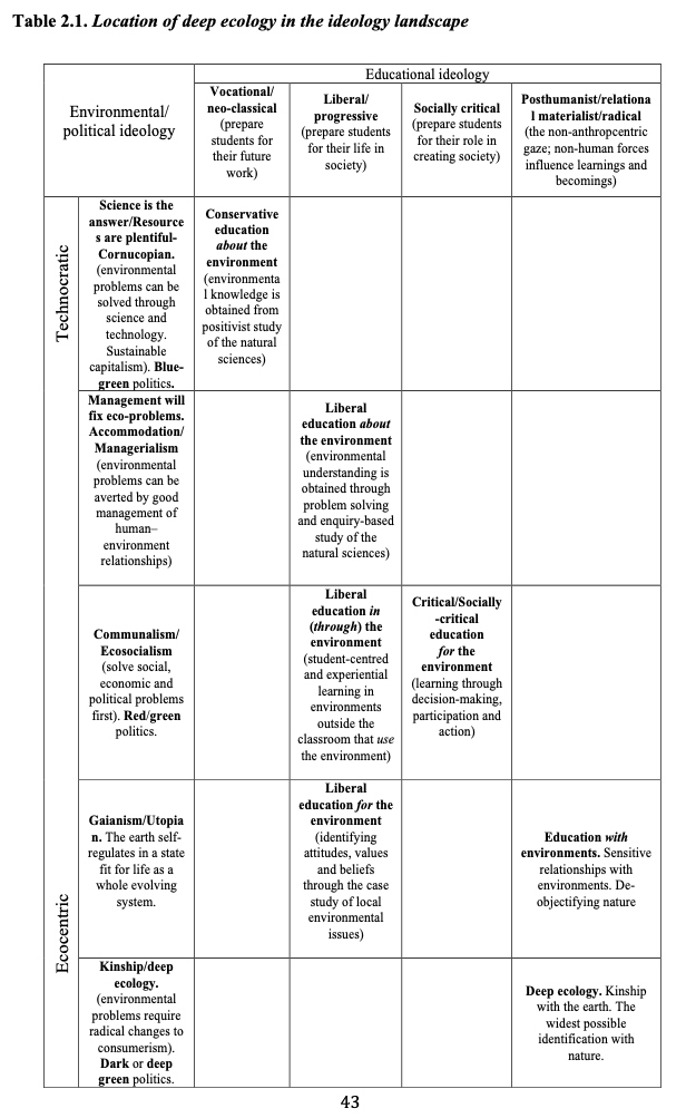 Part of the environmentalist divide is over the relationship between humans and nature. Do we operate from an ecocentric or anthropocentric one? Tolkien's heroes are "stewards" in the Chrisitian model: belonging to a hierarchy of care for Middle-earth, exercising dominion on behalf of nature. Ecocentric worldviews emphasize that humans exist within a system and must play a positive role.