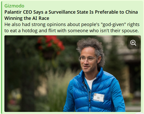 👽🤡Palantir CEO: Surveillance State Is Preferable to China Winning the AI Race.