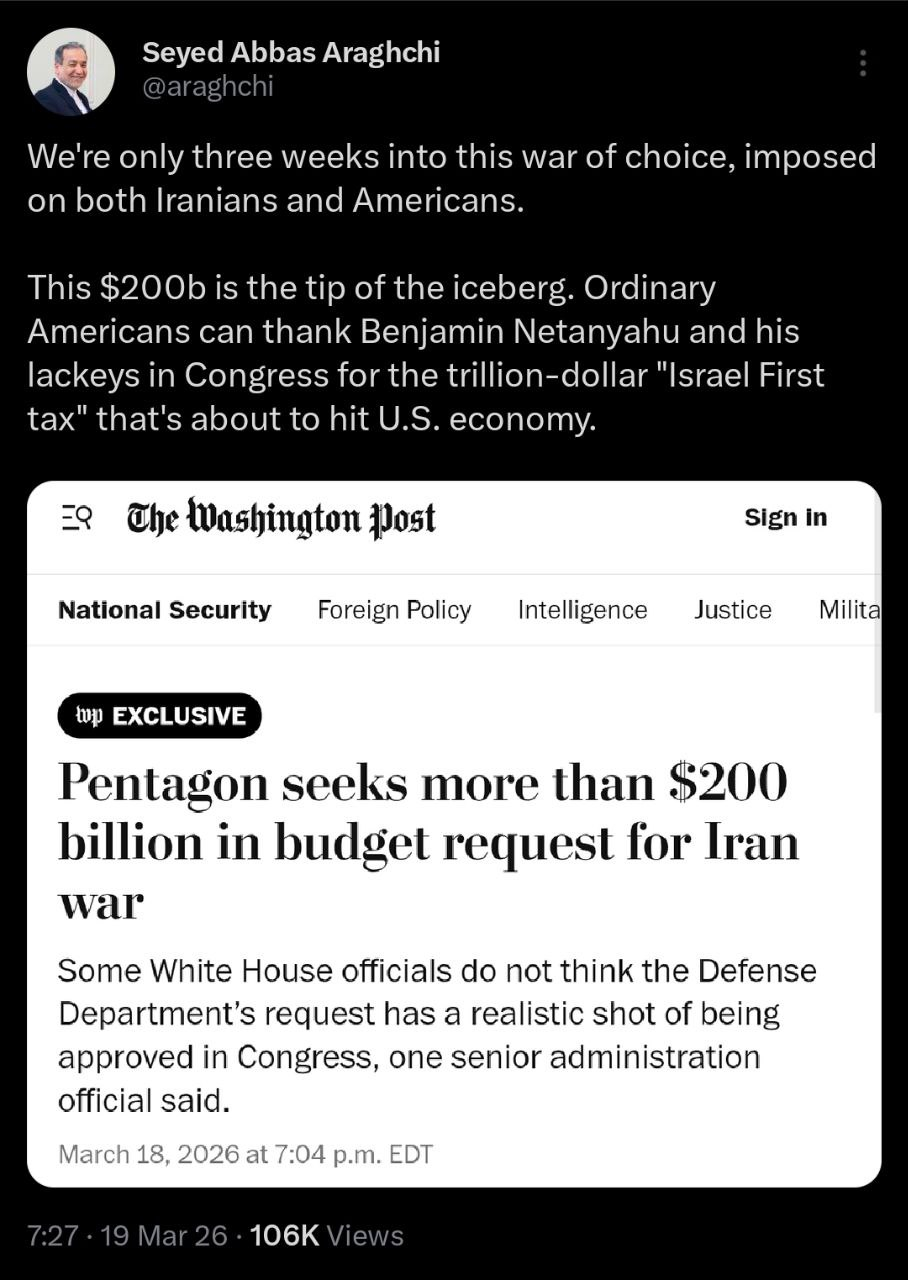 >>This is the first time the U.S. has admitted that Iran managed to hit one of its warplanes since the start of the American-Israeli war on the Islamic Republic nearly three weeks ago.