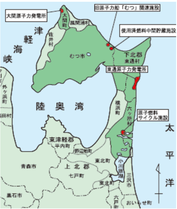 えーと、あのへんの核施設は泊原発、六ヶ所村、東通か