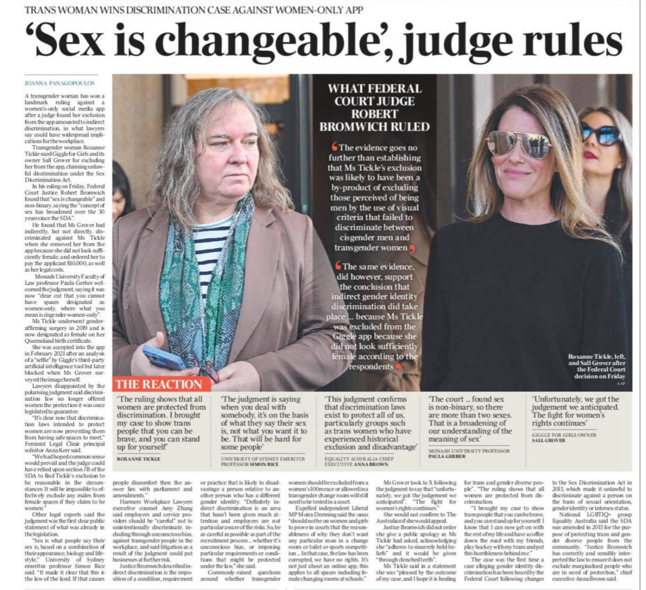 The Supreme Court ruled in April this year that the legal definition of a woman under the Equality Act was based on biological sex, not preferred gender identity.