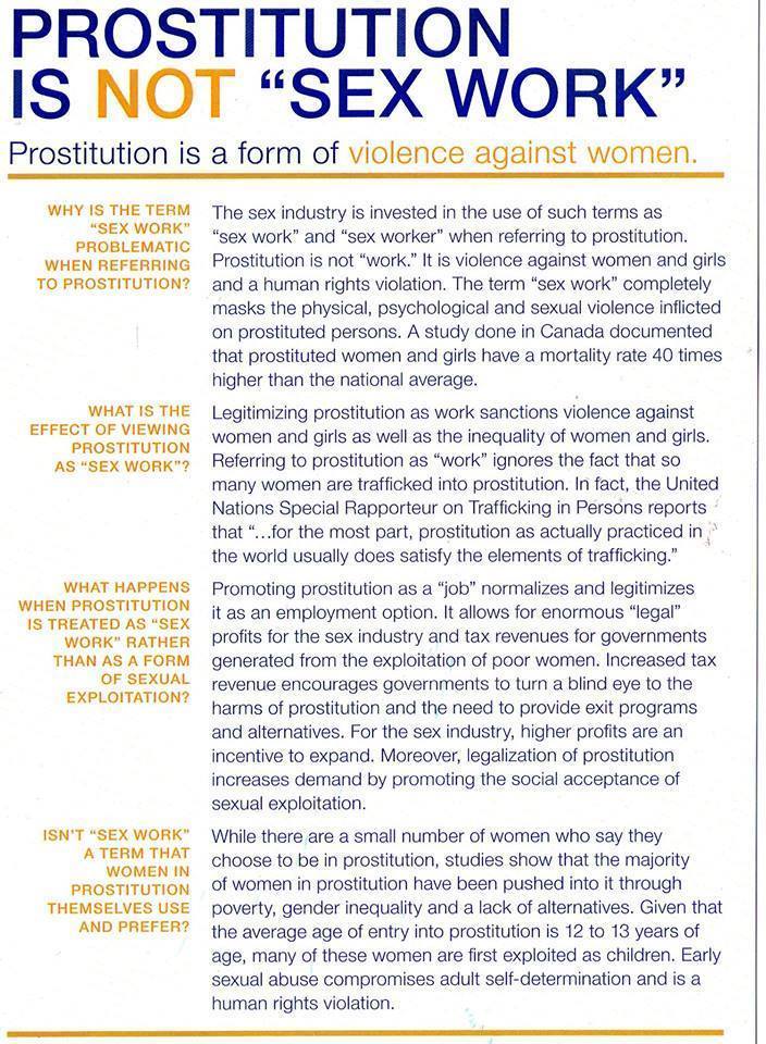 Legitimizing prostitution as work sanctions violence against women and girls as well as the inequality of women and girls.