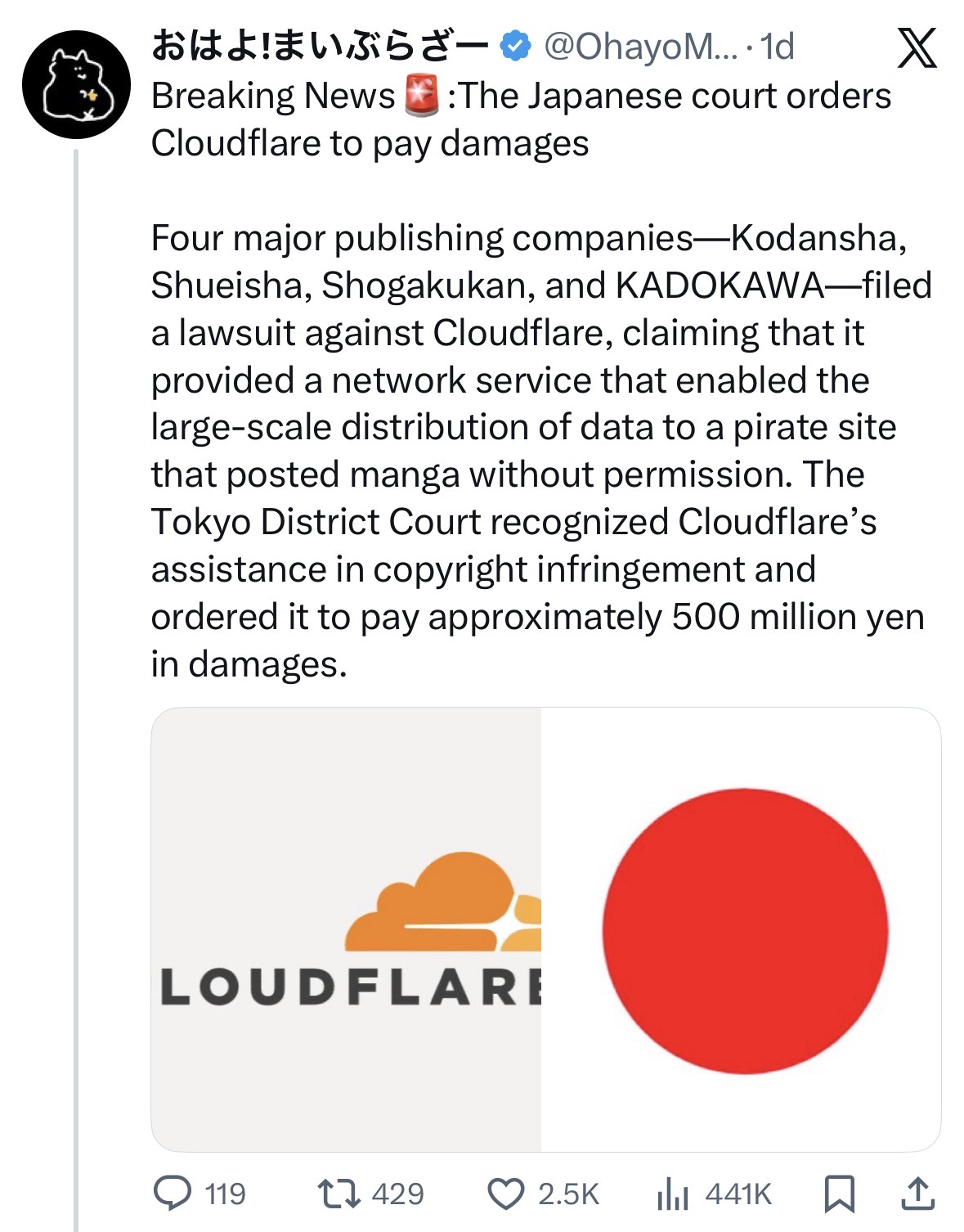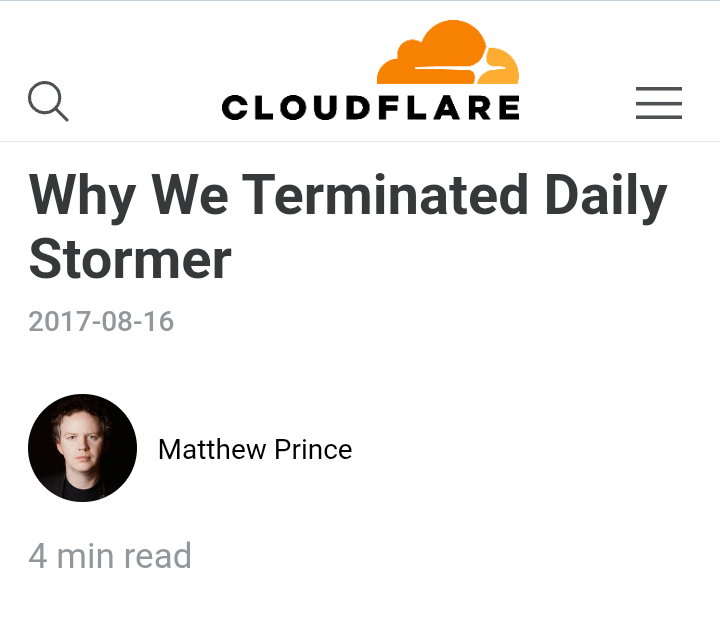 lol maybe cloudflare shouldn’t have taken editorial responsibility for all of their customers. just a thought. In conversation from poa.st permalink Attachments