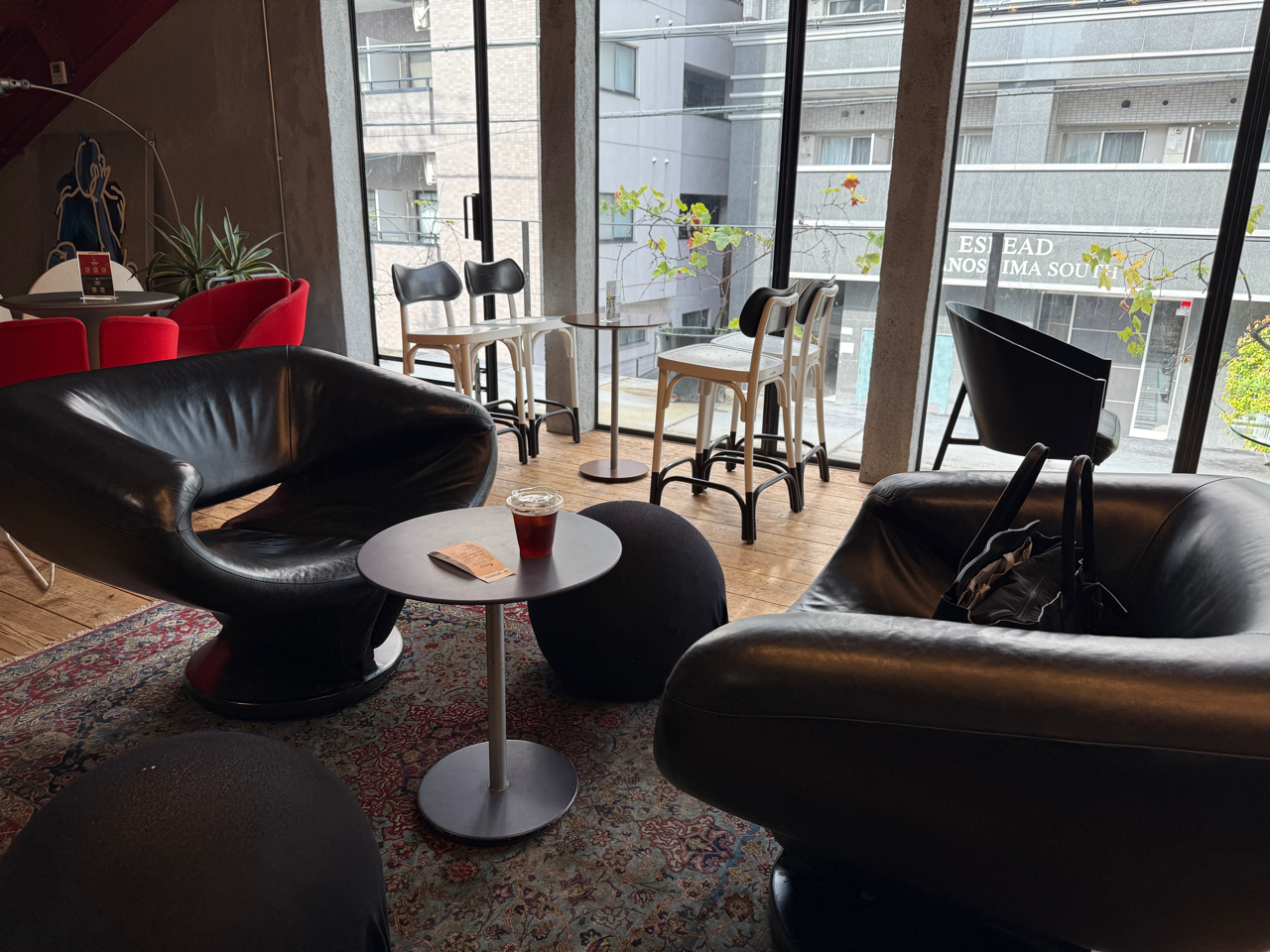 よくわからん形状の椅子に座ってコヒキメてる