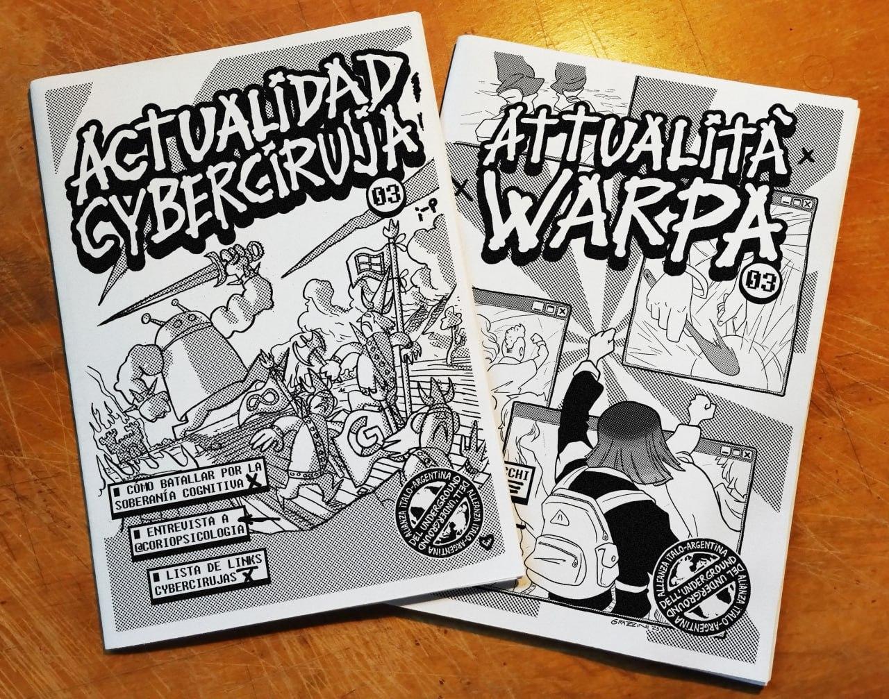 Mañana en #elclubdelcybercirujeo se presenta el #3 del fanzine de Actualidad Cyberciruja | Attualitá Warpa, el órgano propagandistico de la alianza italo-argentina del underground. El lado en español tiene una nota sobre #SoberaniaCognitiva , entrevista una @CorioPsicologia links de descarga y mas! @kenobit
