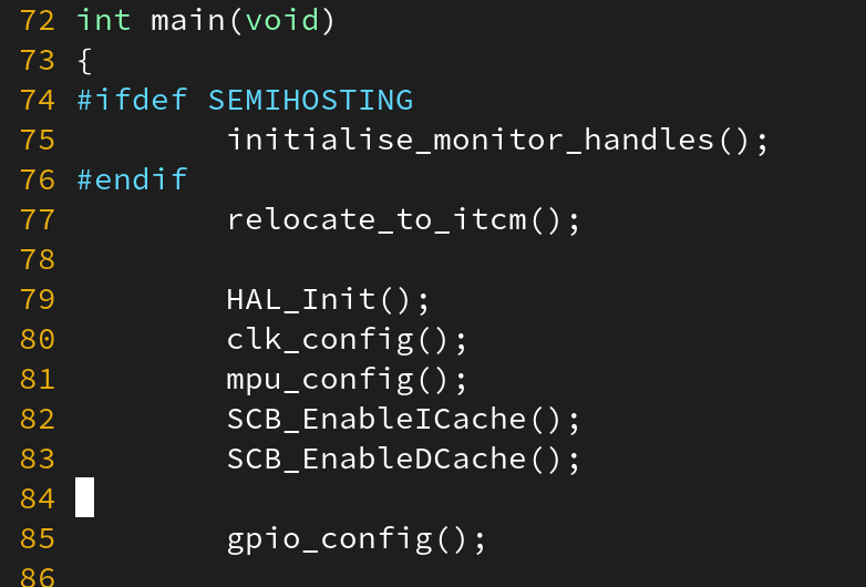 Keep optimizing IRQ latency on the STM32H743 @ 480 MHz. Just enabled i-cache and d-cache, and the IRQ latency dropped from 100 ns to 70 ns. 🚀 But cache shouldn't work like this. So my code is still touching slow memory somewhere. The stack perhaps, which is still in "normal" RAM. The slow Flash perhaps also makes it slower to abort main() if an instruction is stuck in a wait state. Need to check everything carefully... #electronics#STM32