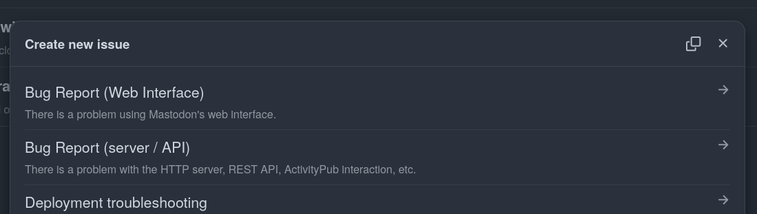 @cheeaun No, I meant which one to use of the bug report on that site (see attached img)
