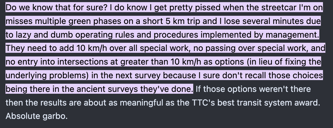 The "source" of that? A *forum post* of somebody saying they *hope* there isn't a 10 km/h speed limit like there is on the Spadina streetcar.