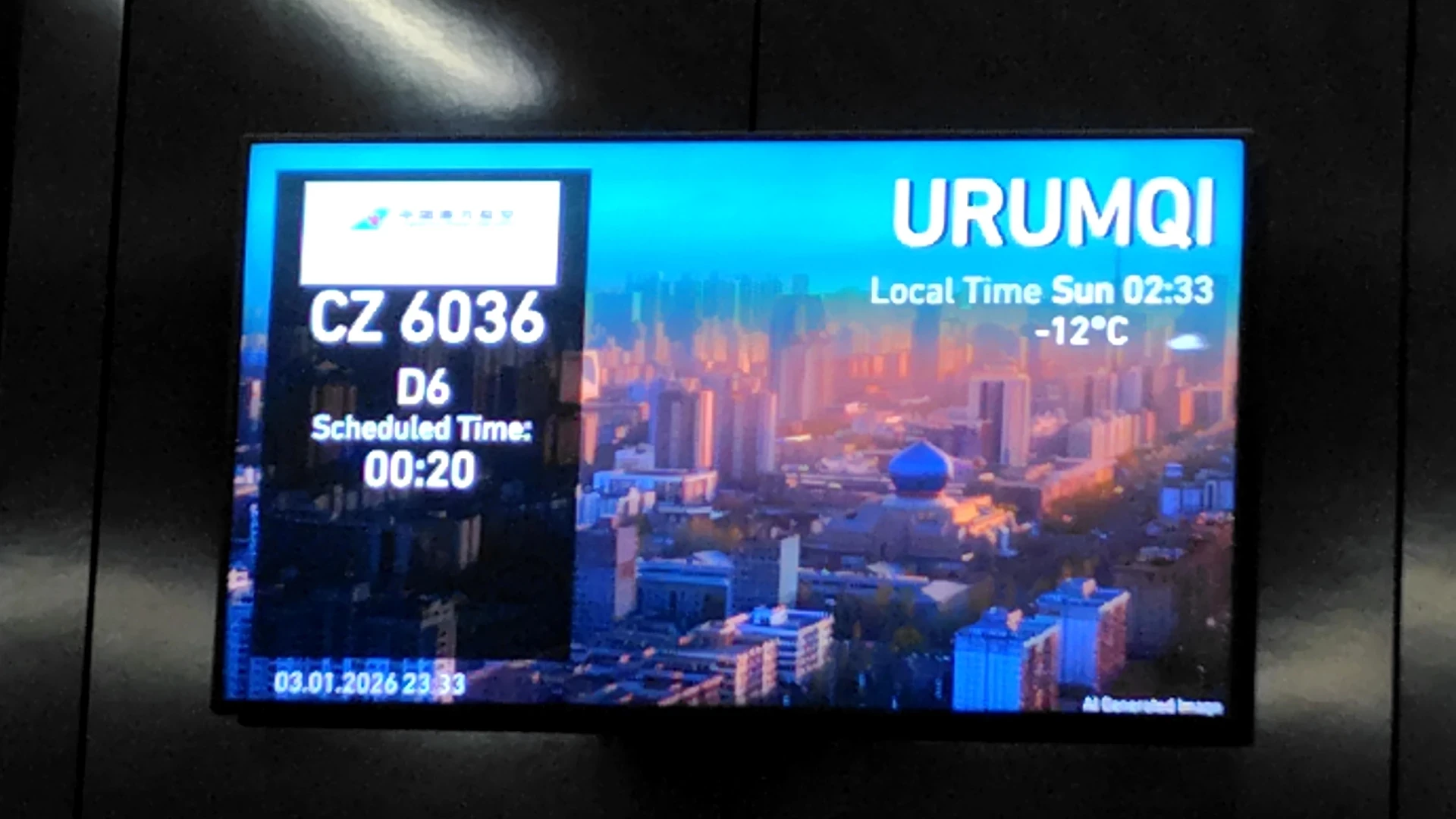 [CZ6036 イスタンブール国際空港|ウルムチ天山空港行]
