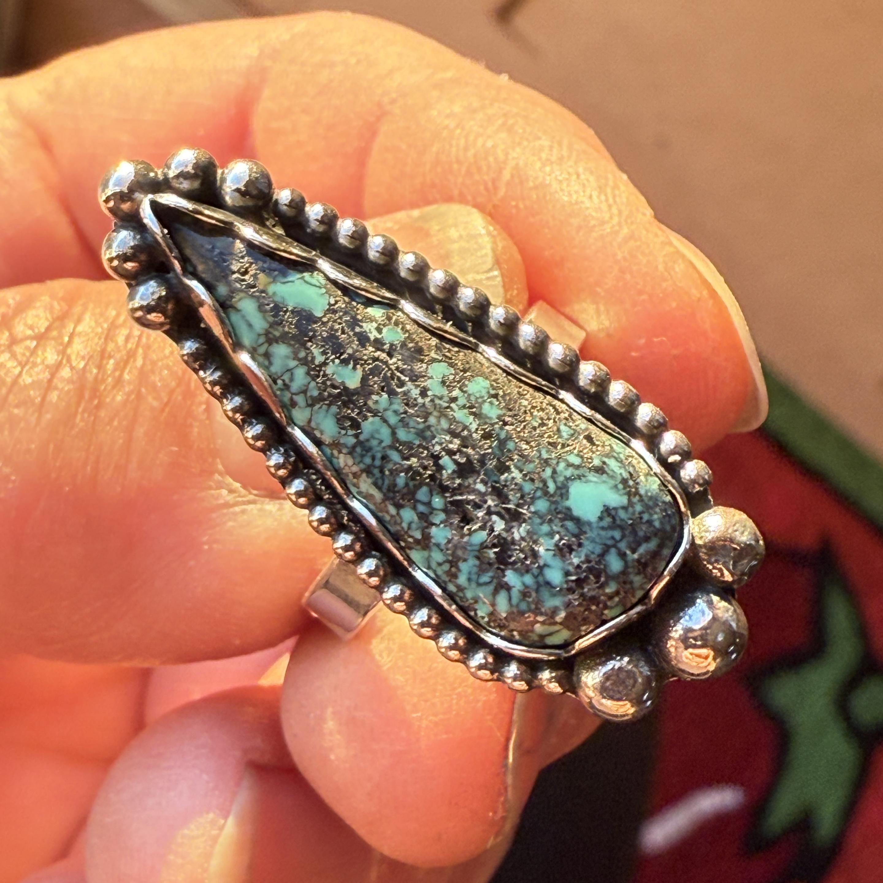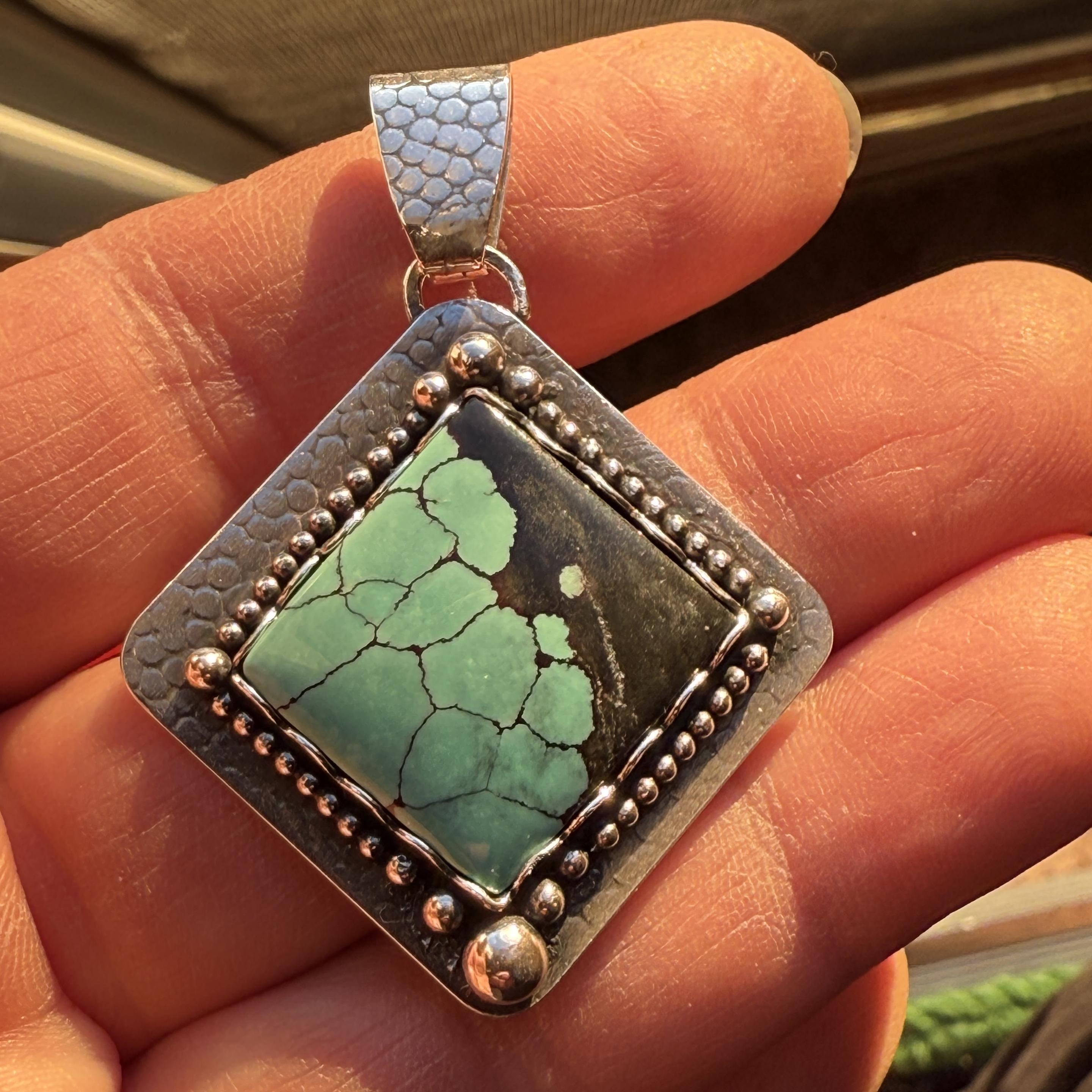 Two more mobile jewelry studio pieces. A turquoise and sterling silver ring and a Cloud Mountain and sterling silver pendant. Both of these pieces use scalloped bezel wire, bead wire, and individually set and soldered silver balls. There's a lot of sparkle in the sunlight. I made this ring a lot smaller and the only finger it fits is my pinky. ๐ Clearly I need to work on sizing. #SupportArtistsAndMakers