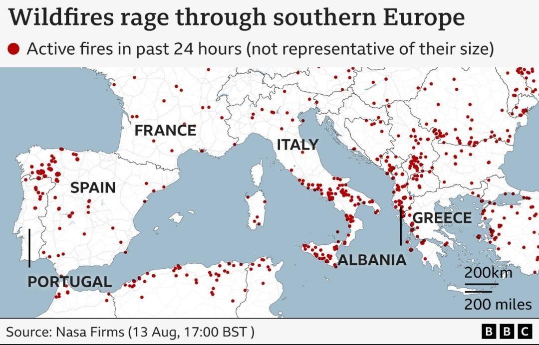 Spain, Portugal, Italy and Greece are looking at temperatures above 40°C this week. This are particularly dangerous for the very young, the elderly, those who can't afford air conditioning, and those who work outdoors.