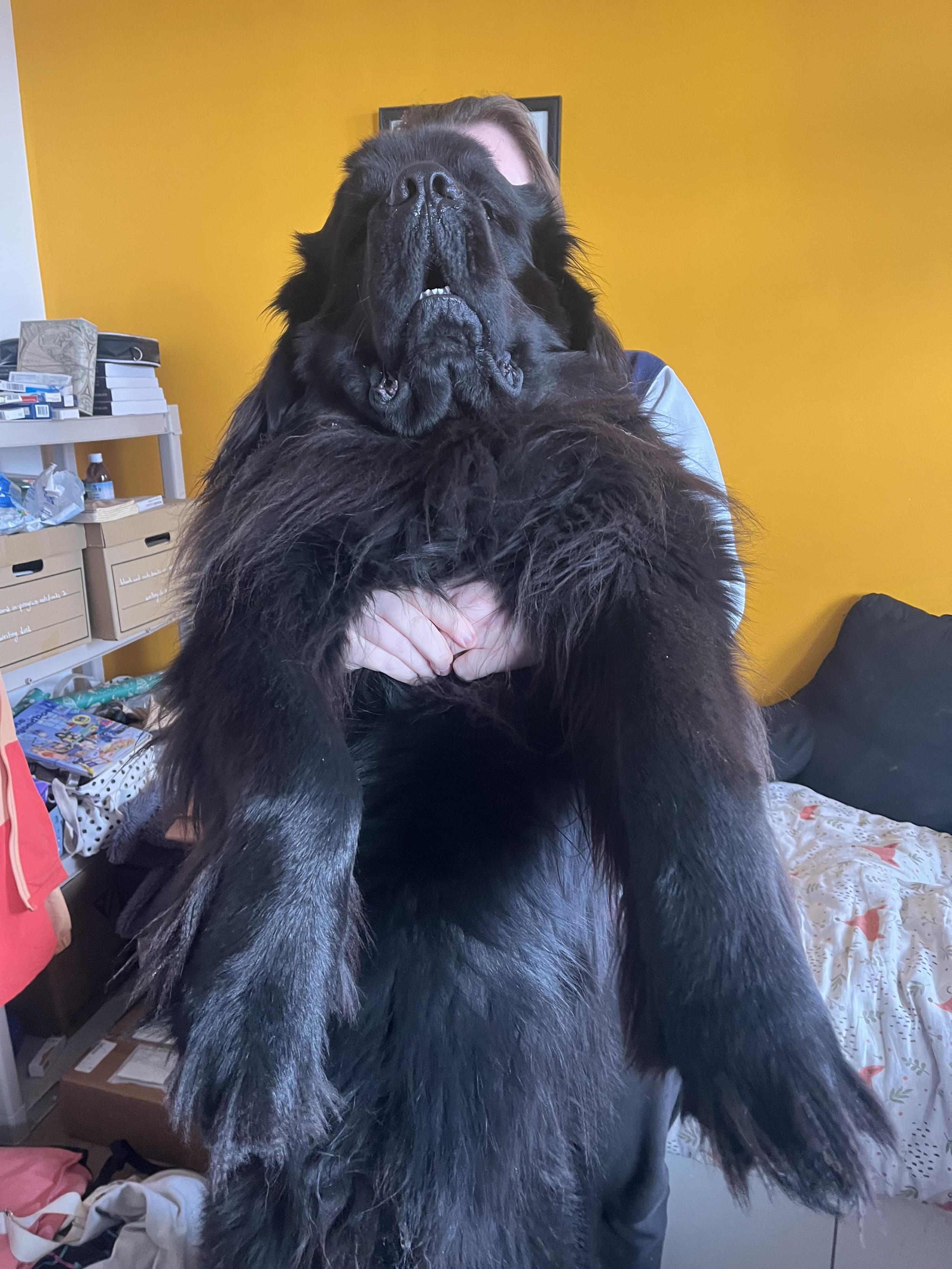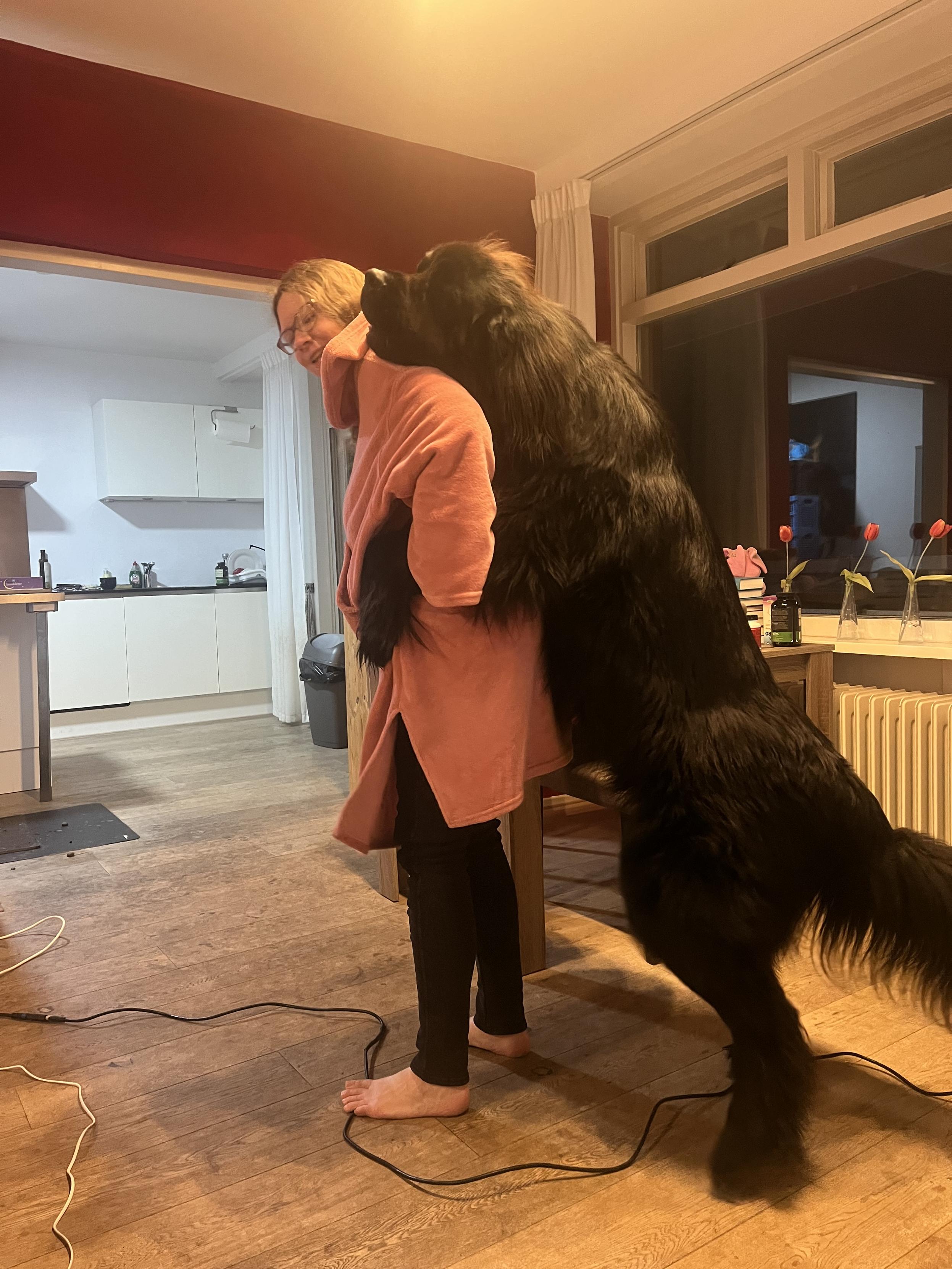 we ordered delivery and the poor worker arrived very stressed and anxious about how she was late and how her Dutchglish skills weren't strong enough to make a good, customer-placating explanation for why she was late. I resolved this by asking if she likes dogs. Odin emergency therapy was successful