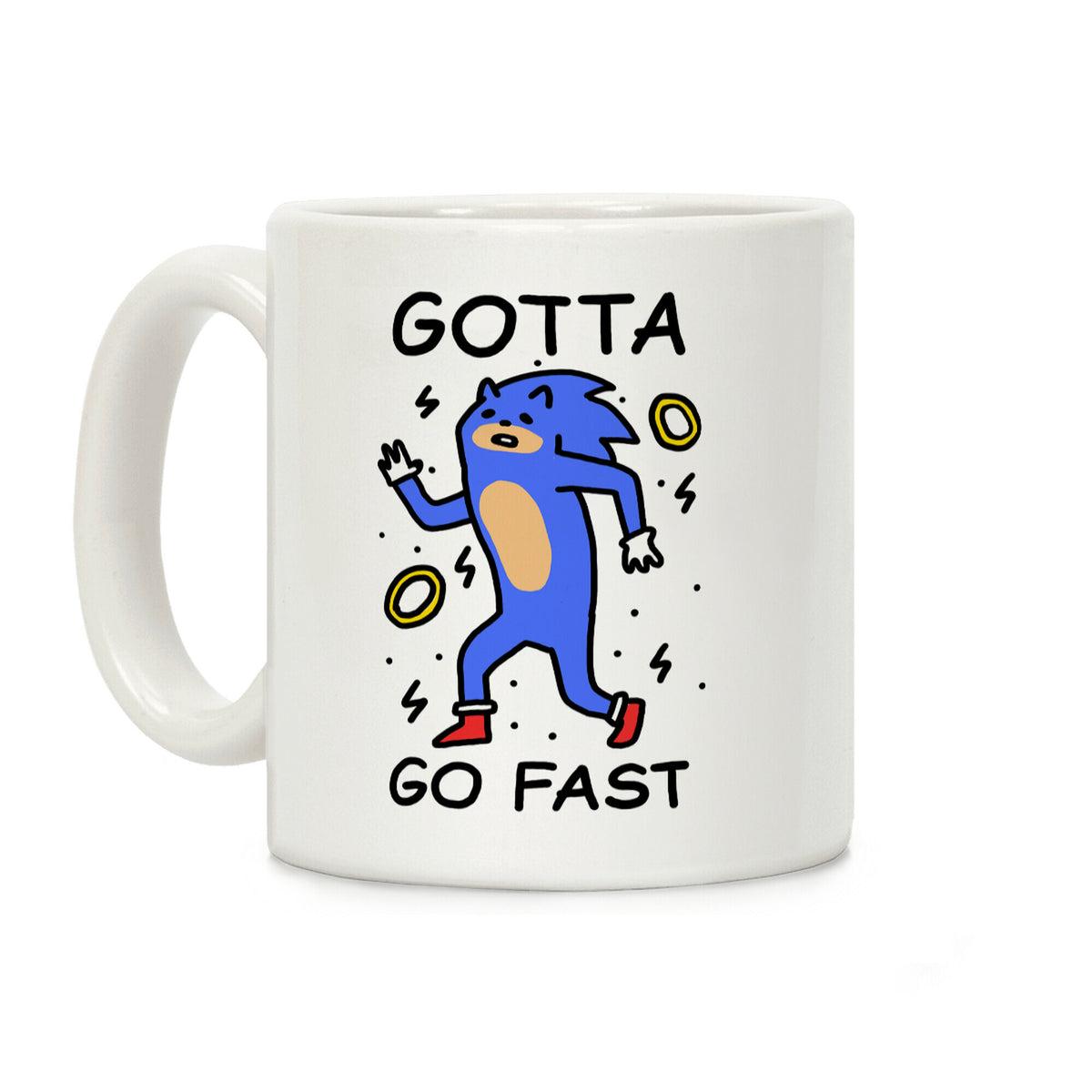 Social media can be a depressing place. So please take a moment to enjoy tonight's Low Quality Ad, this Gotta Go Fast mug. Look at Sonic. He looks demented. Like the artist drew him from memory and also has amnesia. That's fun, right? Gave you a few seconds of happiness, eh?