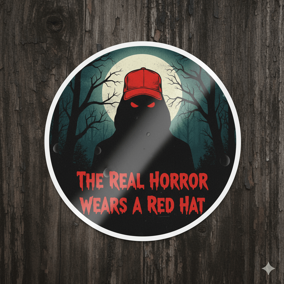 I'm sick of the nonstop political content on here, so tonight's Low Quality Ad is for this totally apolitical "The Real Horror Wears A Red Hat" sticker. I've never heard of this monster, but it sounds terrifying. I'll be wary of red hats from now on. Keep children away from them.