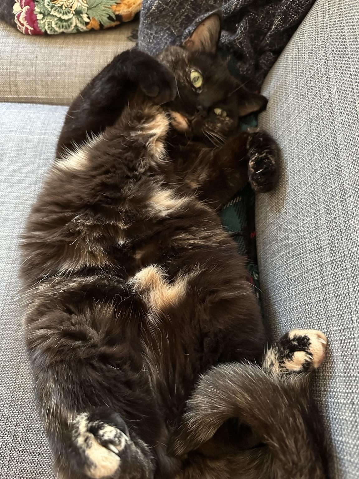 @cstross I bought a heating pad (one for pets, clawproof and without a timer) for Doris, and placed it under her favourite rug. I turn it on during the winter, and it becomes a very effective cat magnet.