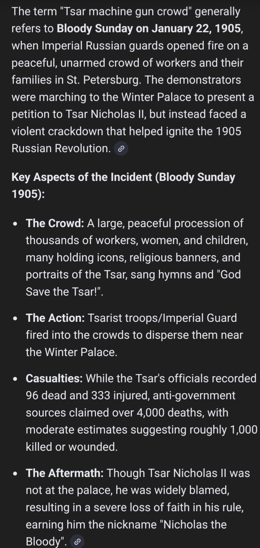 in response to riots in 1905 the Tzar machine guned the crowd. its the same plan here.