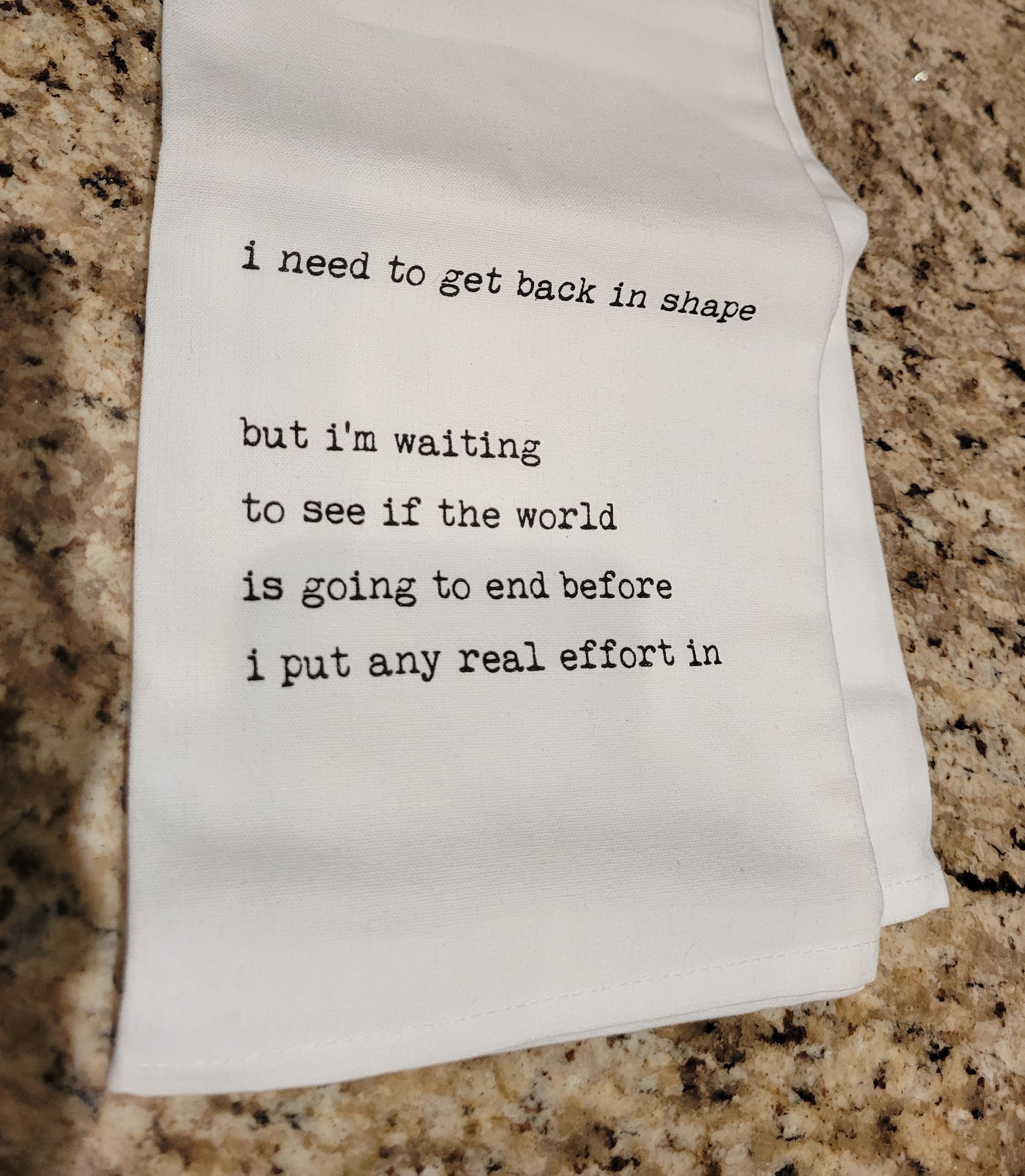 They said it was a "tea towel." I'm calling it my mission statement. Next I'm getting a *Catastrophe A Day* advent calendar.
