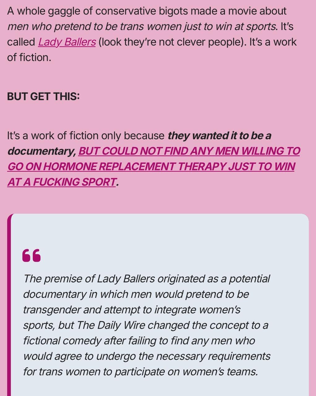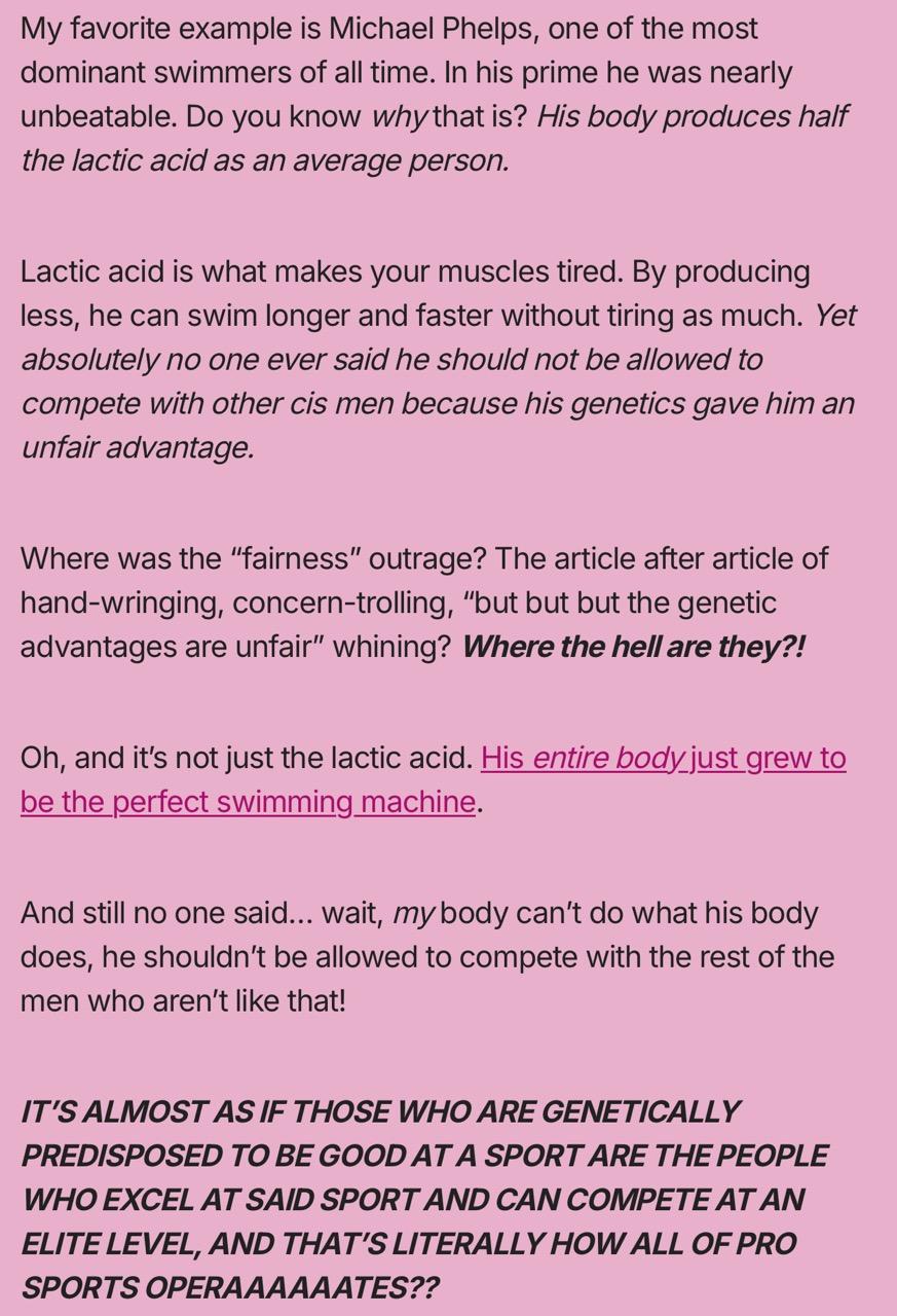 if my entire argument for banning trans women in sports was that cis men are pretending to be trans women to win against cis women