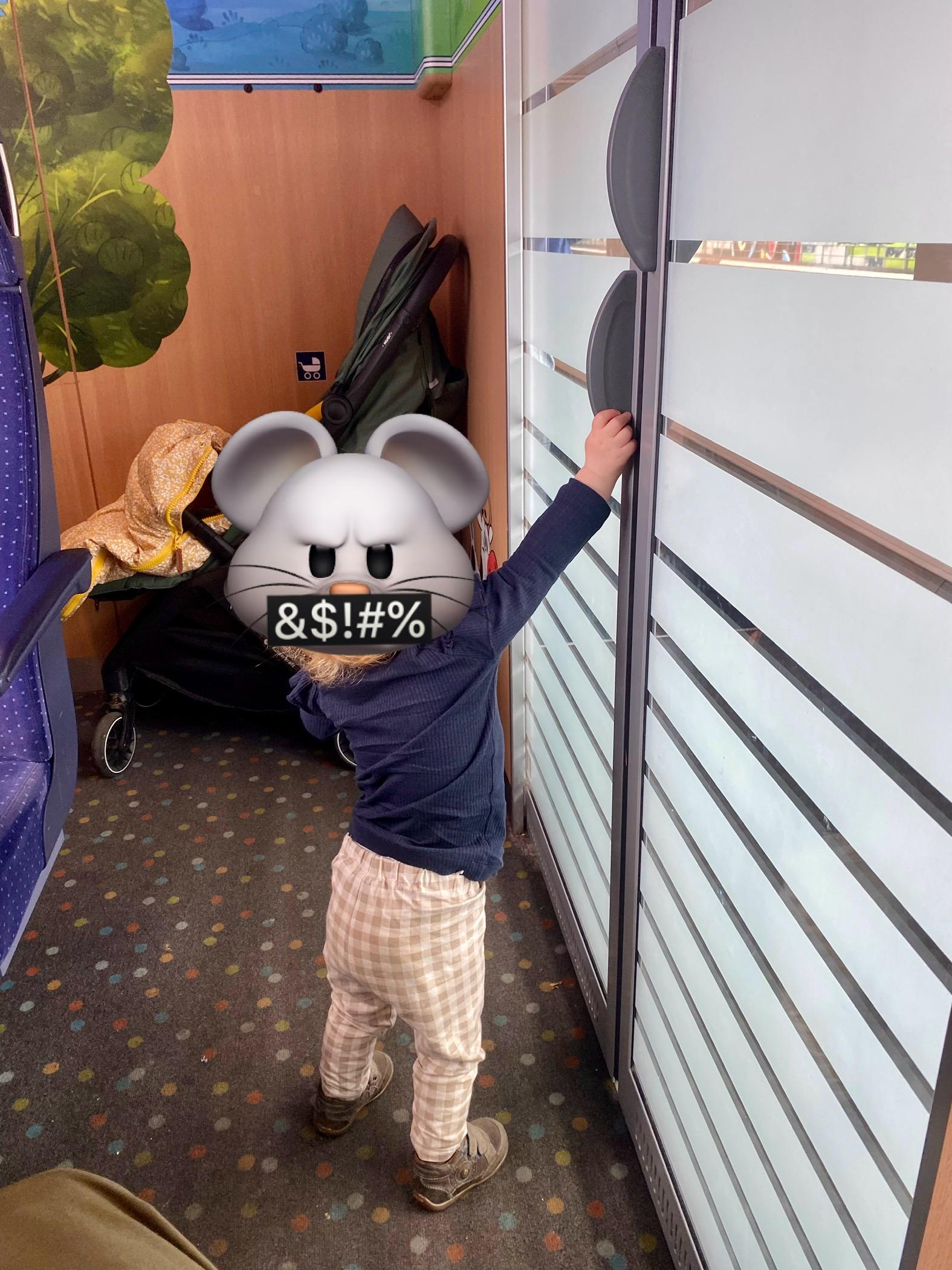 15 minutes in. Toddler is bored out of their mind starfishing the window.