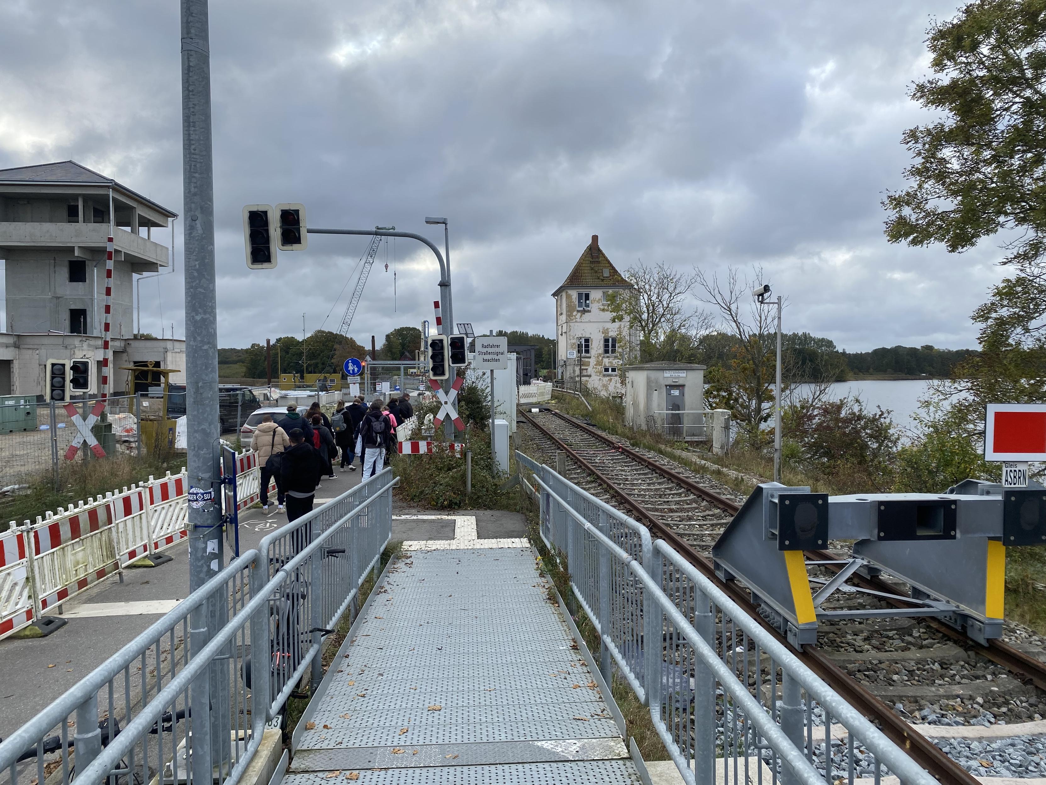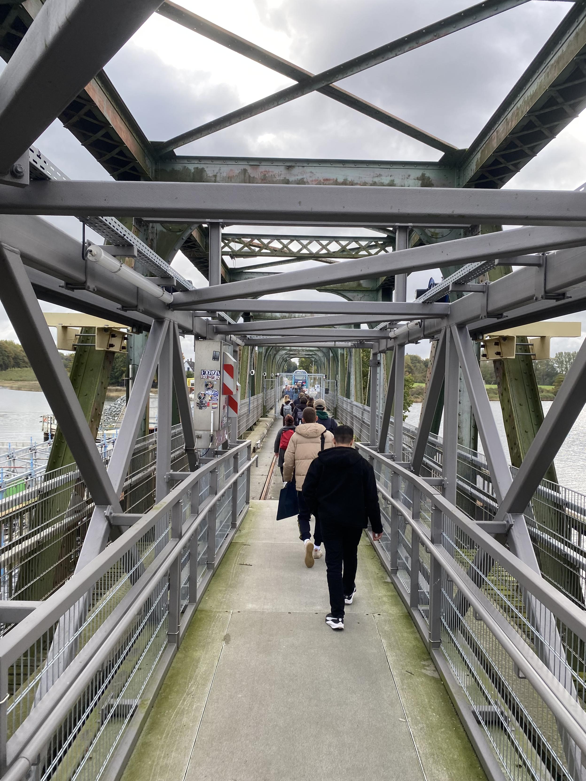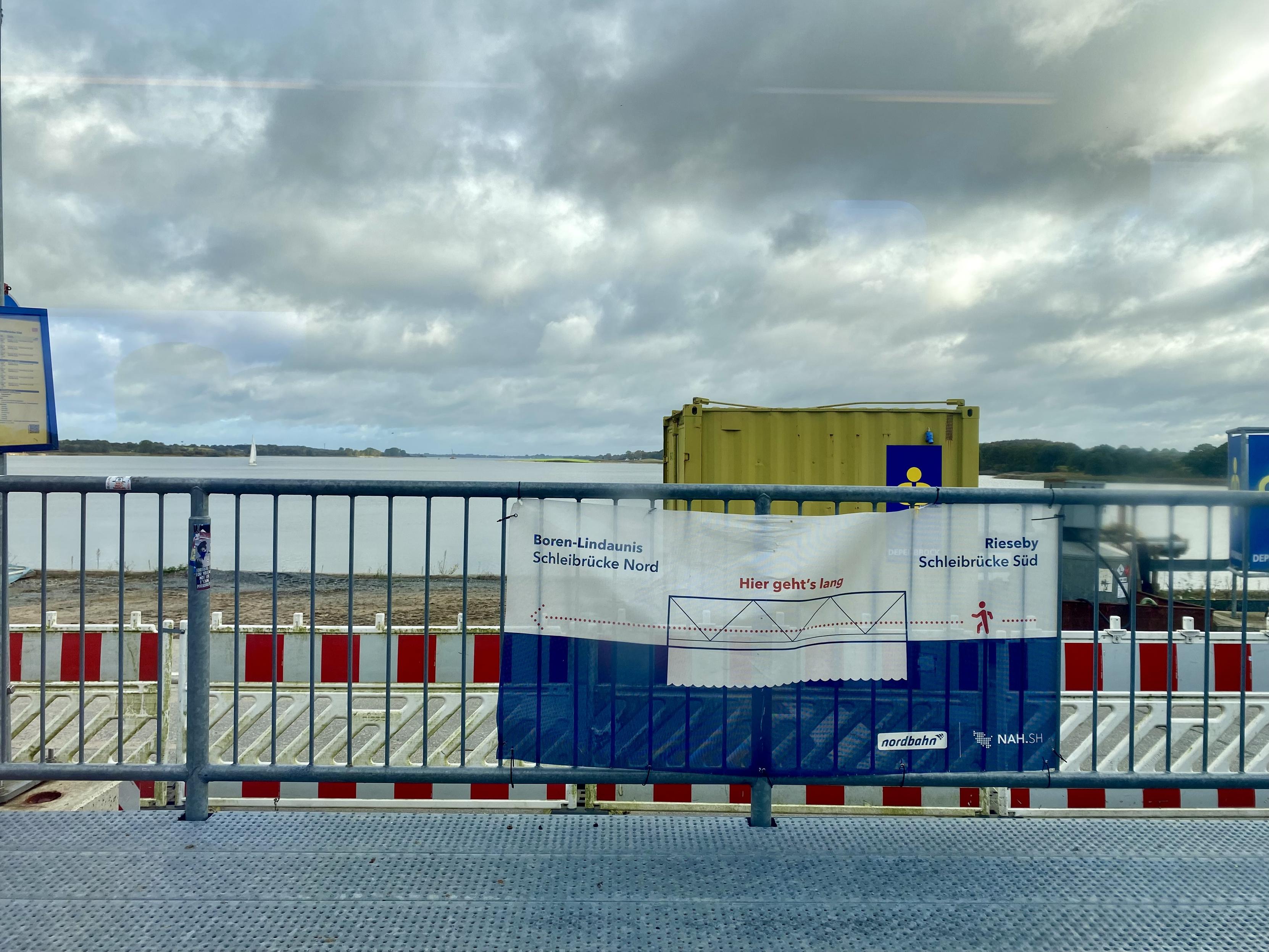 First for me: train-replacement-foot-bridge at the Schleibrücke. Fun!