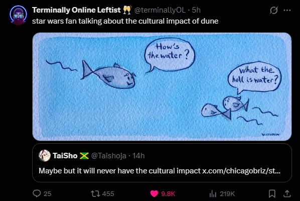 reading dune discourse on twitter is so funny because it absolutely one shots midwits -