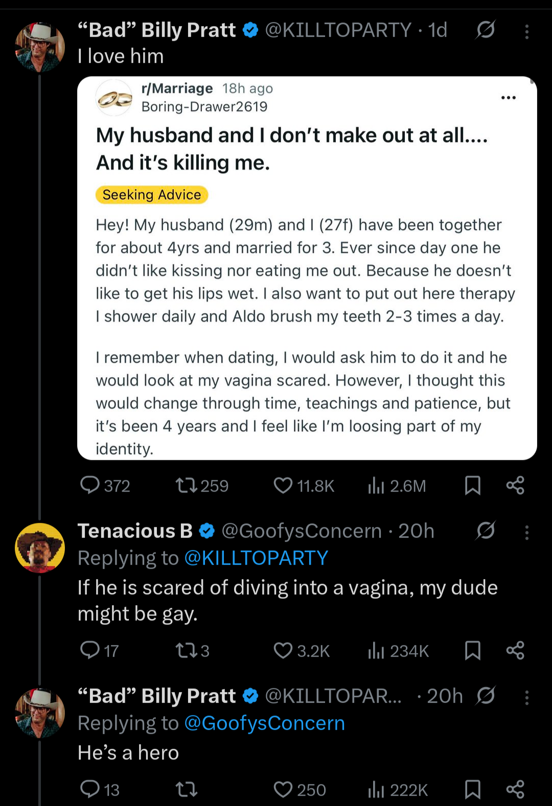 The number of 'based' manosphere men who are literally just in the closet gay is staggering -
