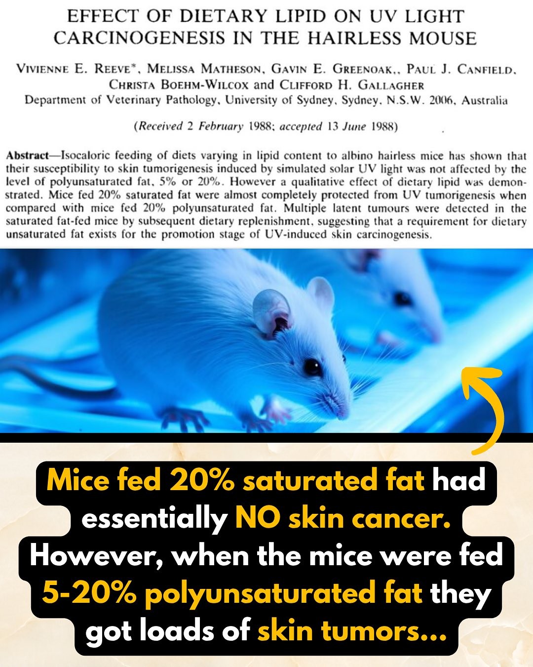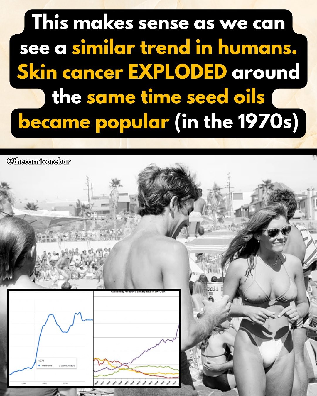 Seed oils are the real cause of skin cancer. Stop blaming the sun. If you want healthy skin you need vitamin E and cholesterol. -